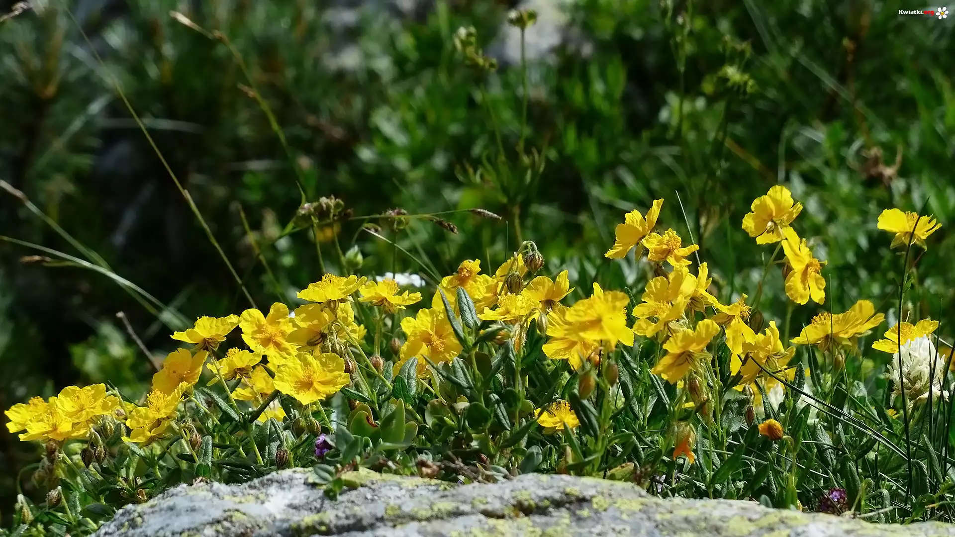 Kwiaty, Żółte, Kwiaty, Posłonki alpejskie skalne - Zdjęcia
