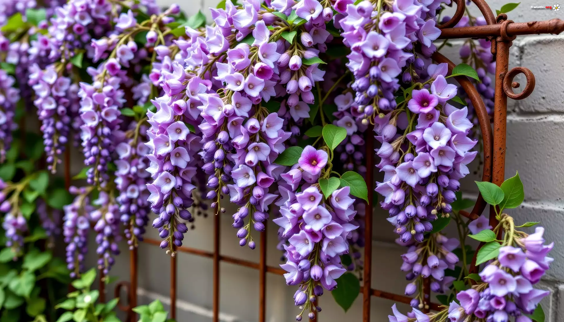 Fioletowe, Kwiaty, Balustrada, Grafika AI - Zdjęcia