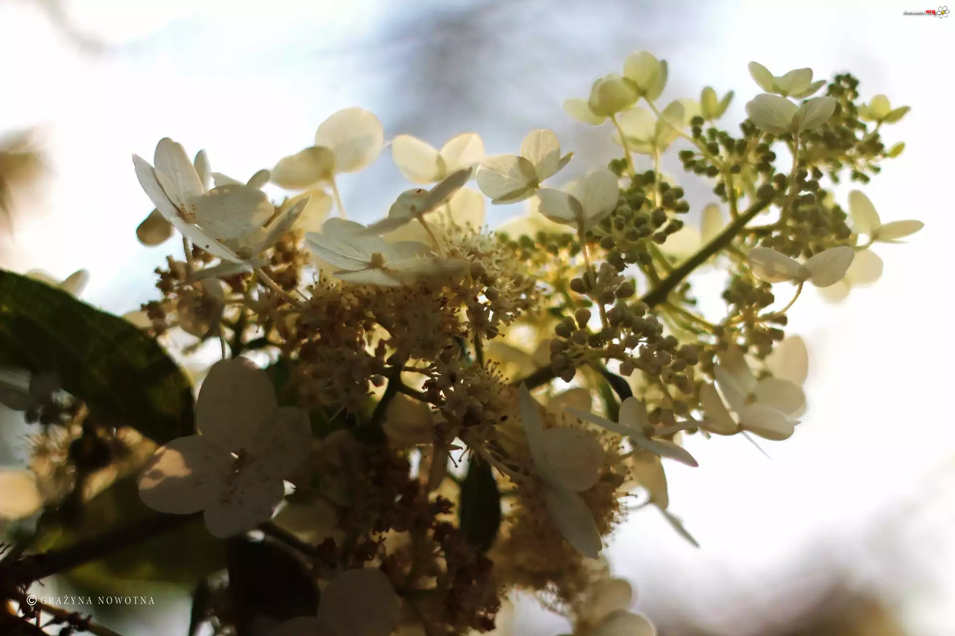 Białe, Kwiaty, Gałązka - Zdjęcia