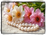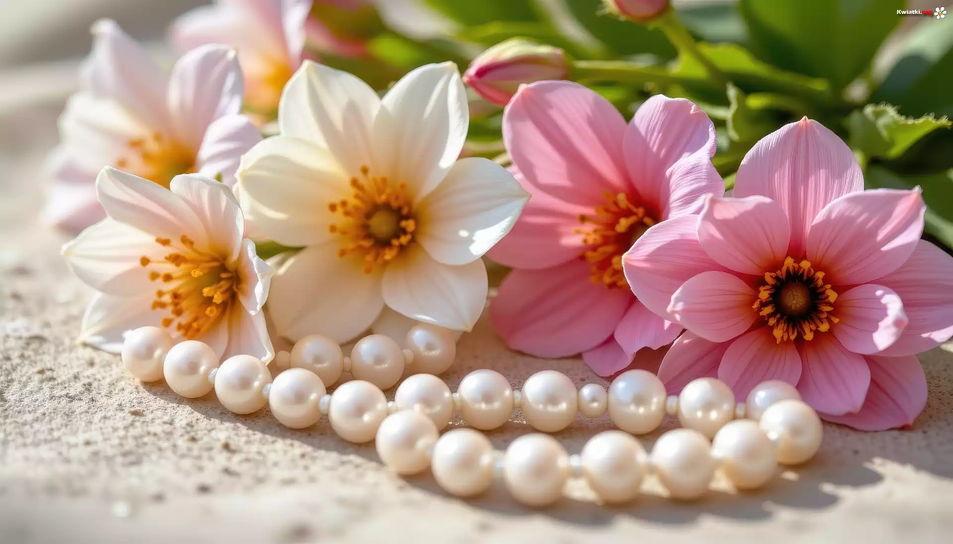 Różowe, Kwiaty, Białe, Korale, Perły - Zdjęcia
