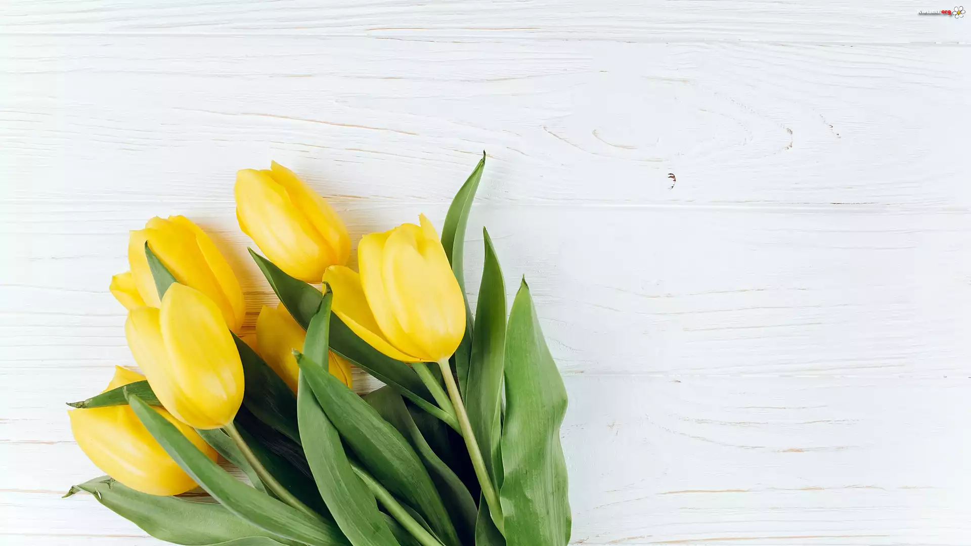Kwiaty, Żółte, Tulipany, Białe, Deski - Zdjęcia