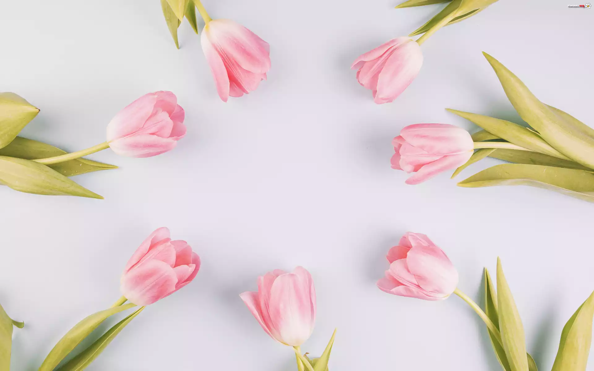 Kwiaty, Różowe, Tulipany, Białe tło - Zdjęcia