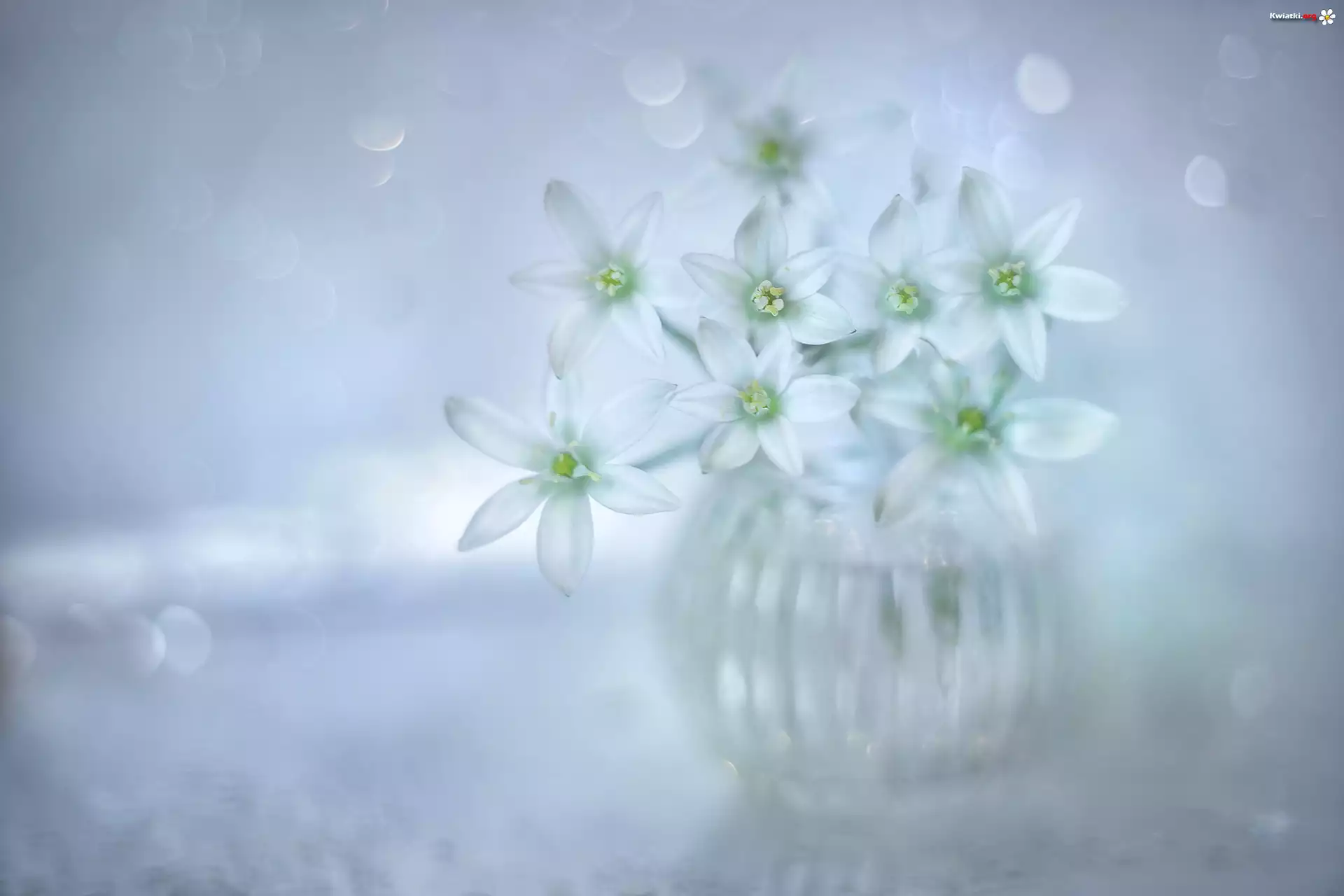 Białe, Kwiaty, Śniedek baldaszkowaty, Wazonik - Zdjęcia