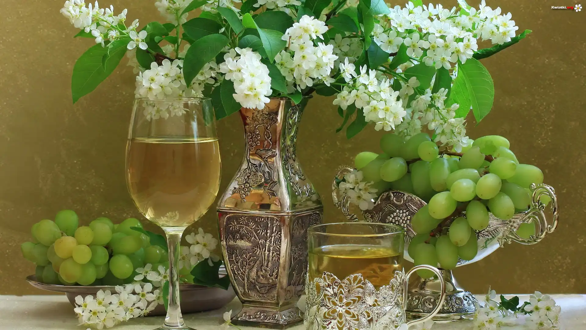Jaśmin, Srebrna, Zastawa, Wino, Herbata, Winogrona - Zdjęcia