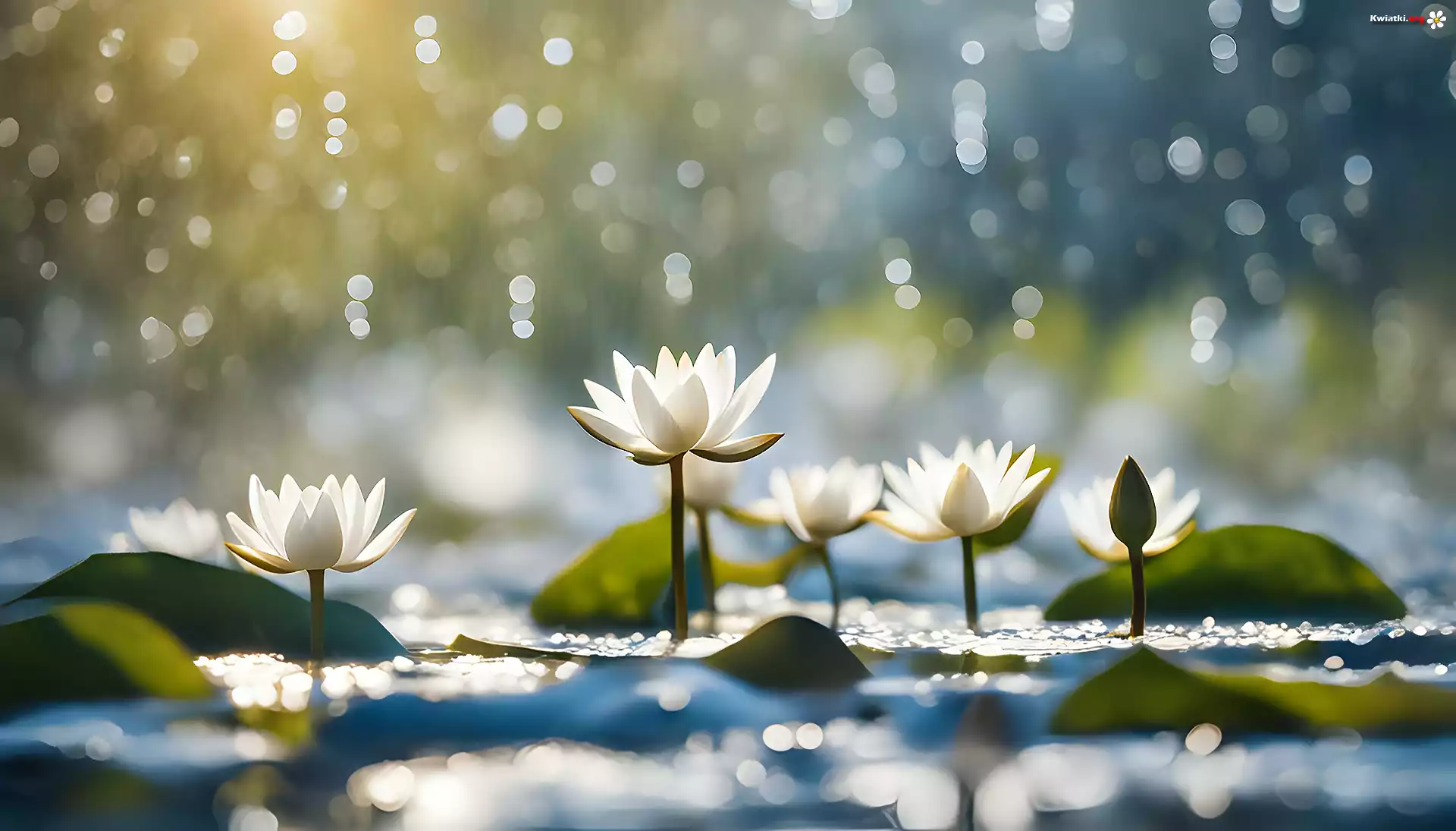 Białe, Lilie wodne, Kwiaty - Zdjęcia