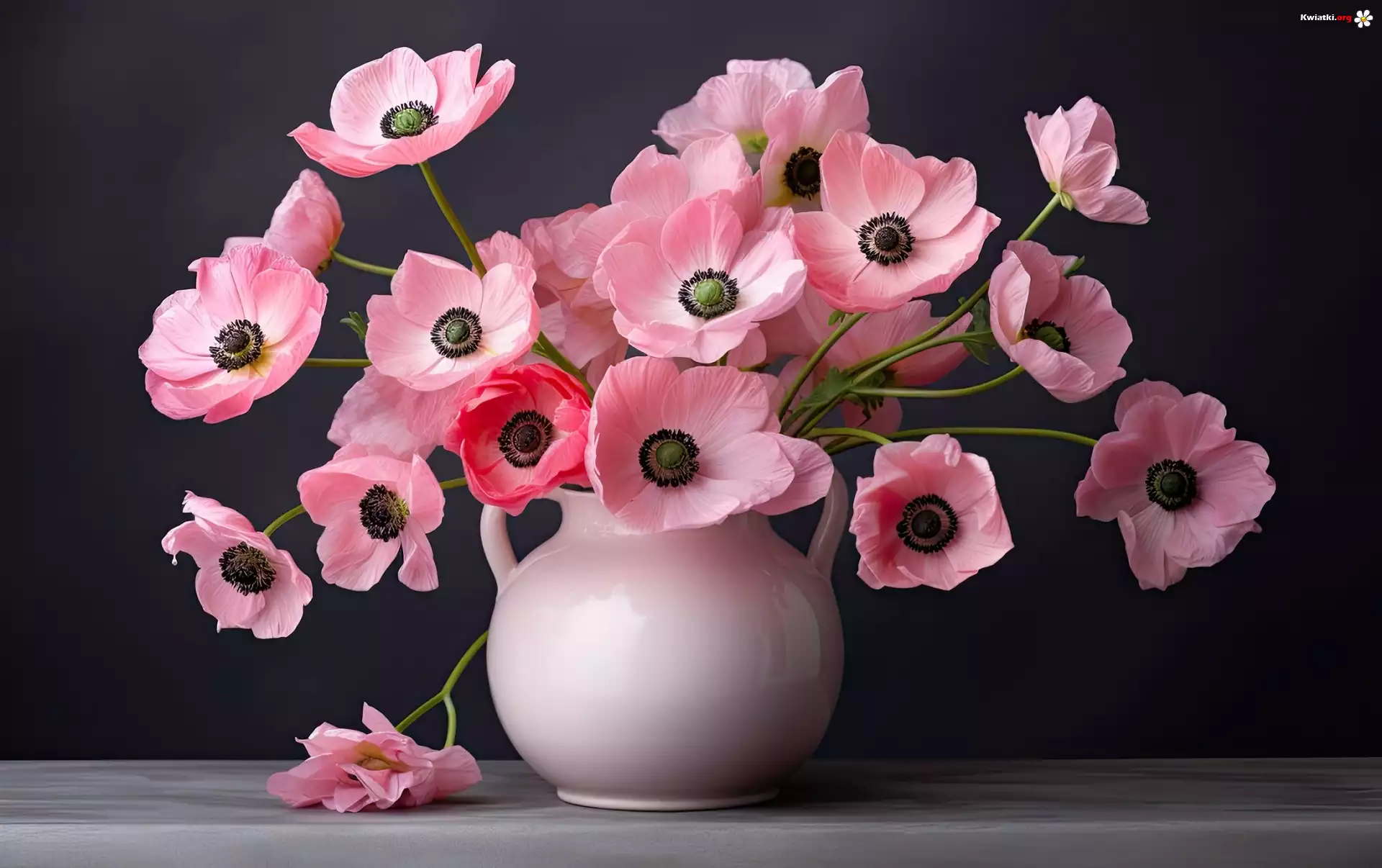 Różowe, Kwiaty, Biały, Wazon, Grafika - Zdjęcia