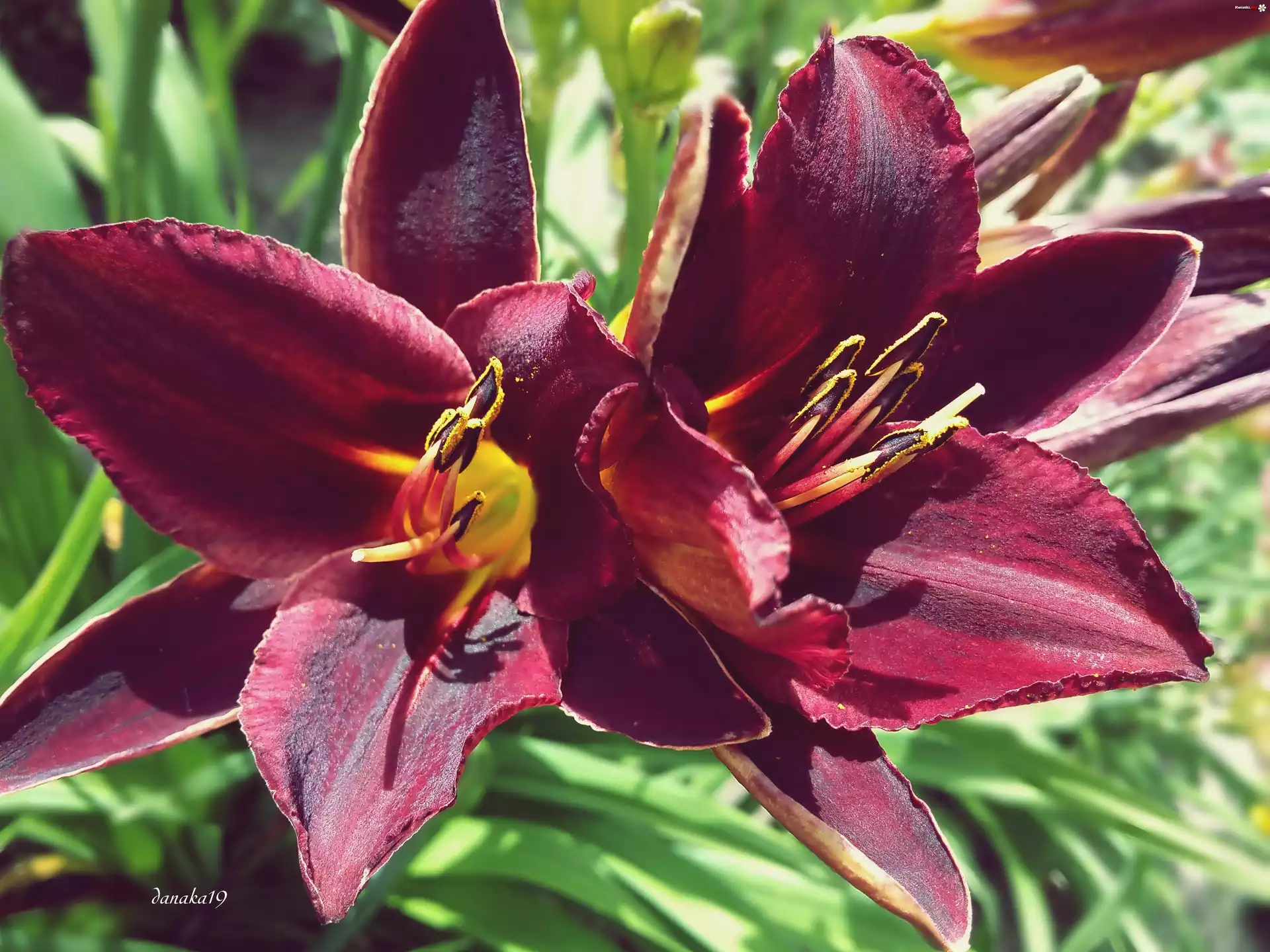 Kwiaty, Ciemno, Bordowe, Liliowce - Zdjęcia