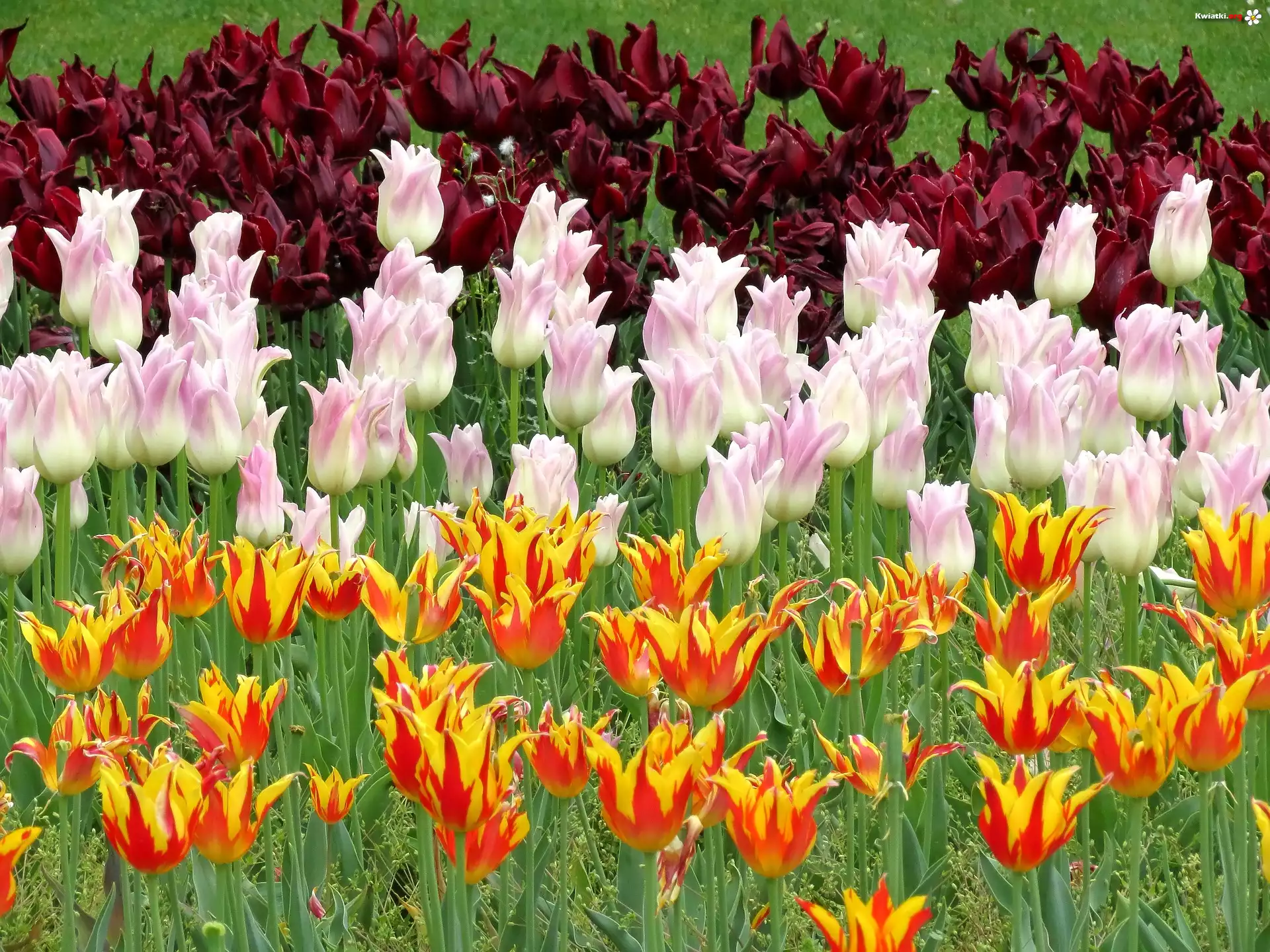 Kwiaty, Różowe, Pomarańczowe, Bordowe, Tulipany - Zdjęcia
