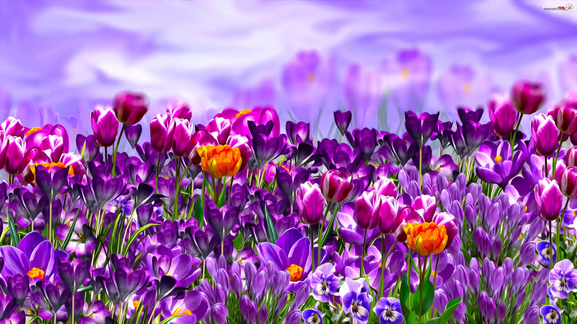 Kwiaty, Krokusy, Tulipany, Bratki, Grafika - Zdjęcia