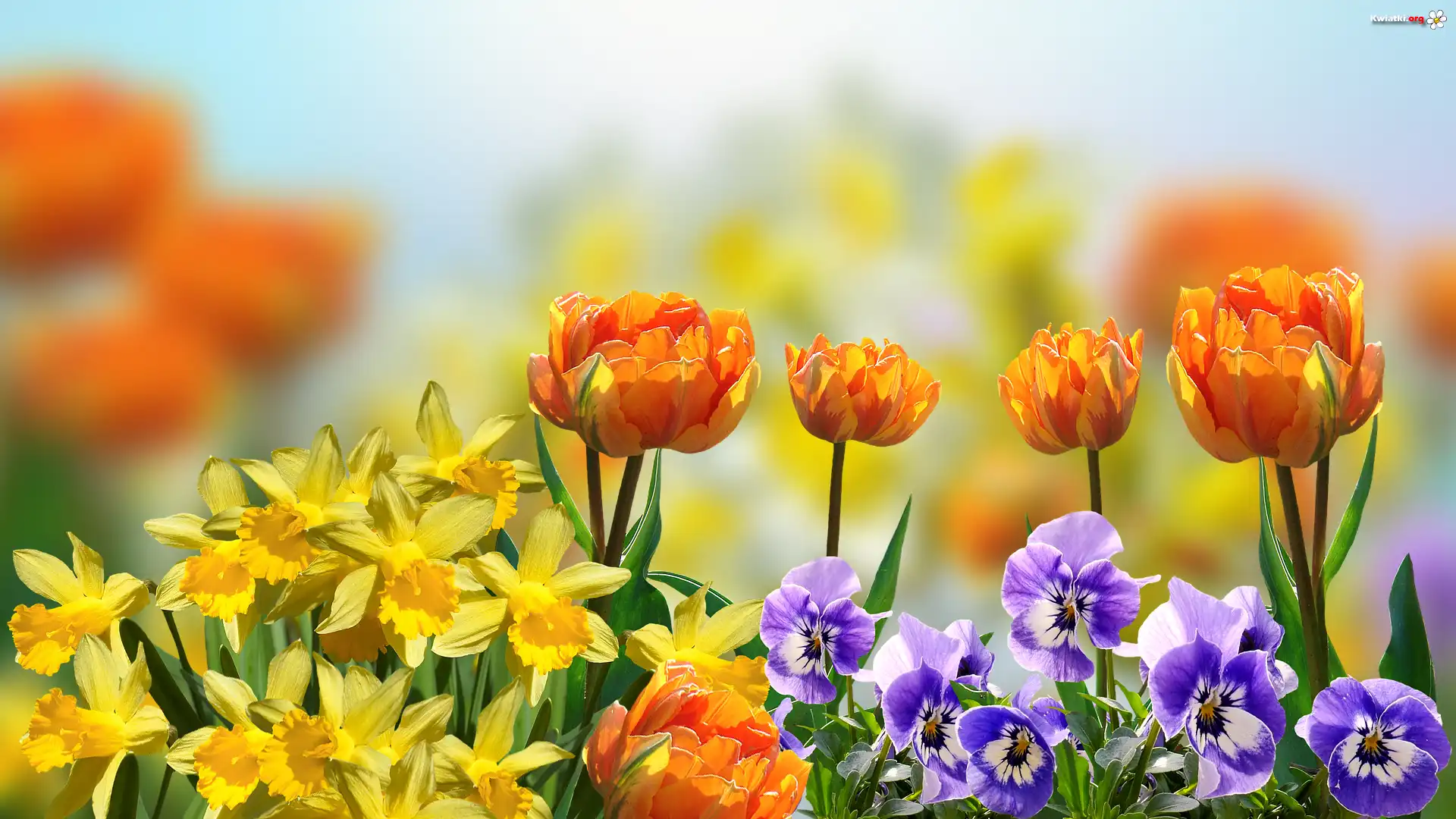 Kwiaty, Tulipany, Bratki, Żonkile - Zdjęcia
