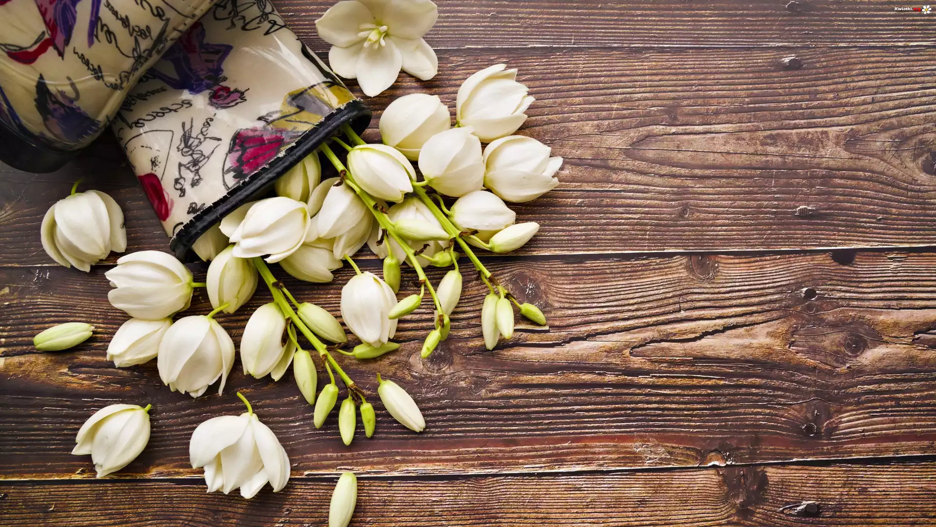 Kwiaty, Białe, Brązowe, Deski - Zdjęcia