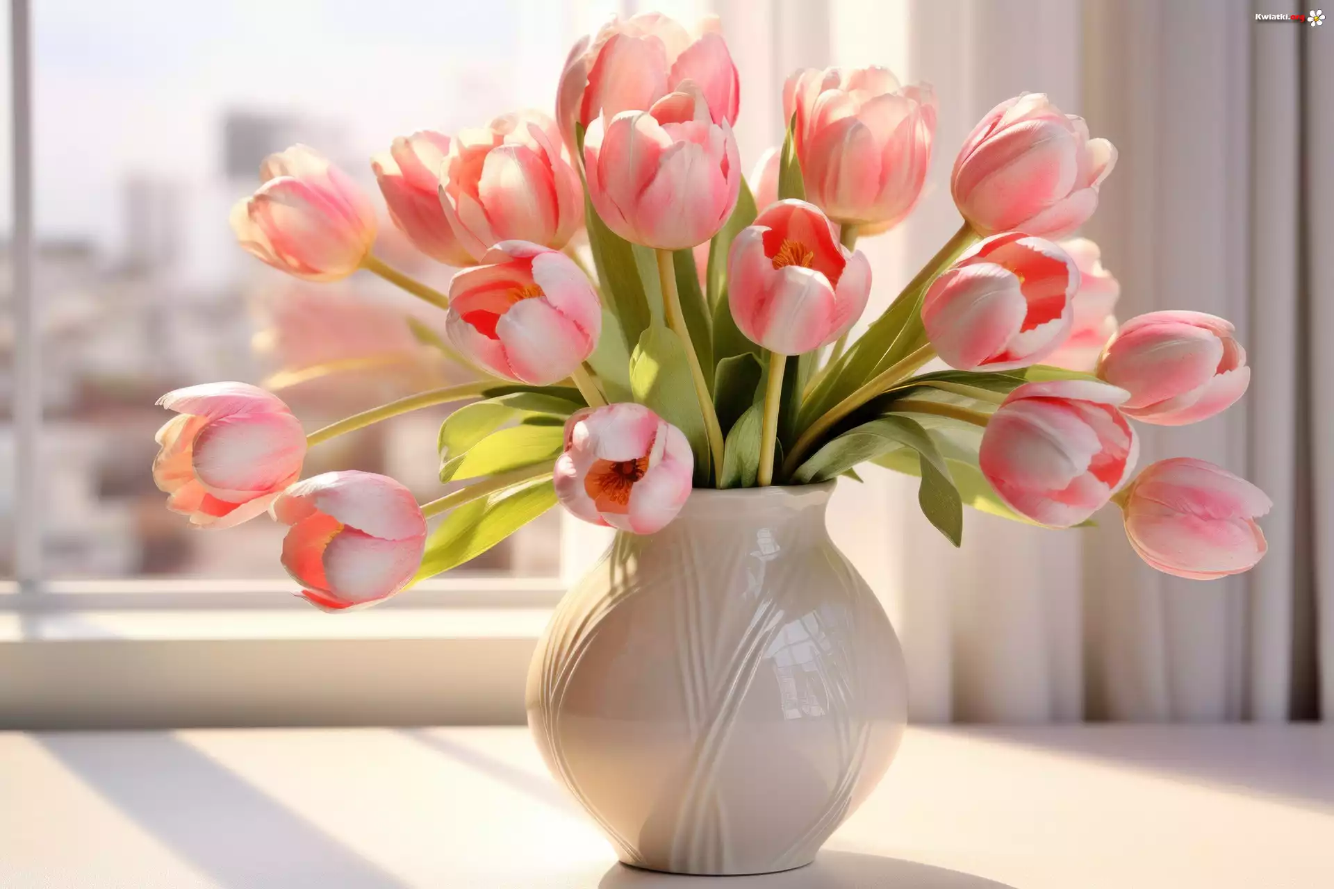 Tulipany, Kwiaty, Bukiet, Biały, Wazon - Zdjęcia