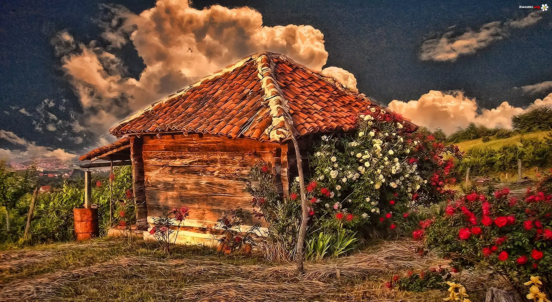 Chmury, Kwiaty, Domek - Zdjęcia