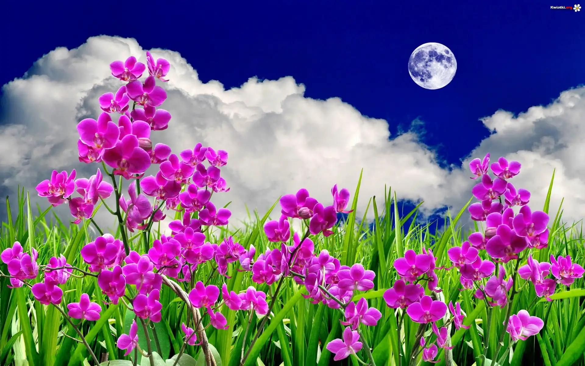 Kwiaty, Storczyki, Chmury, Księżyc - Zdjęcia