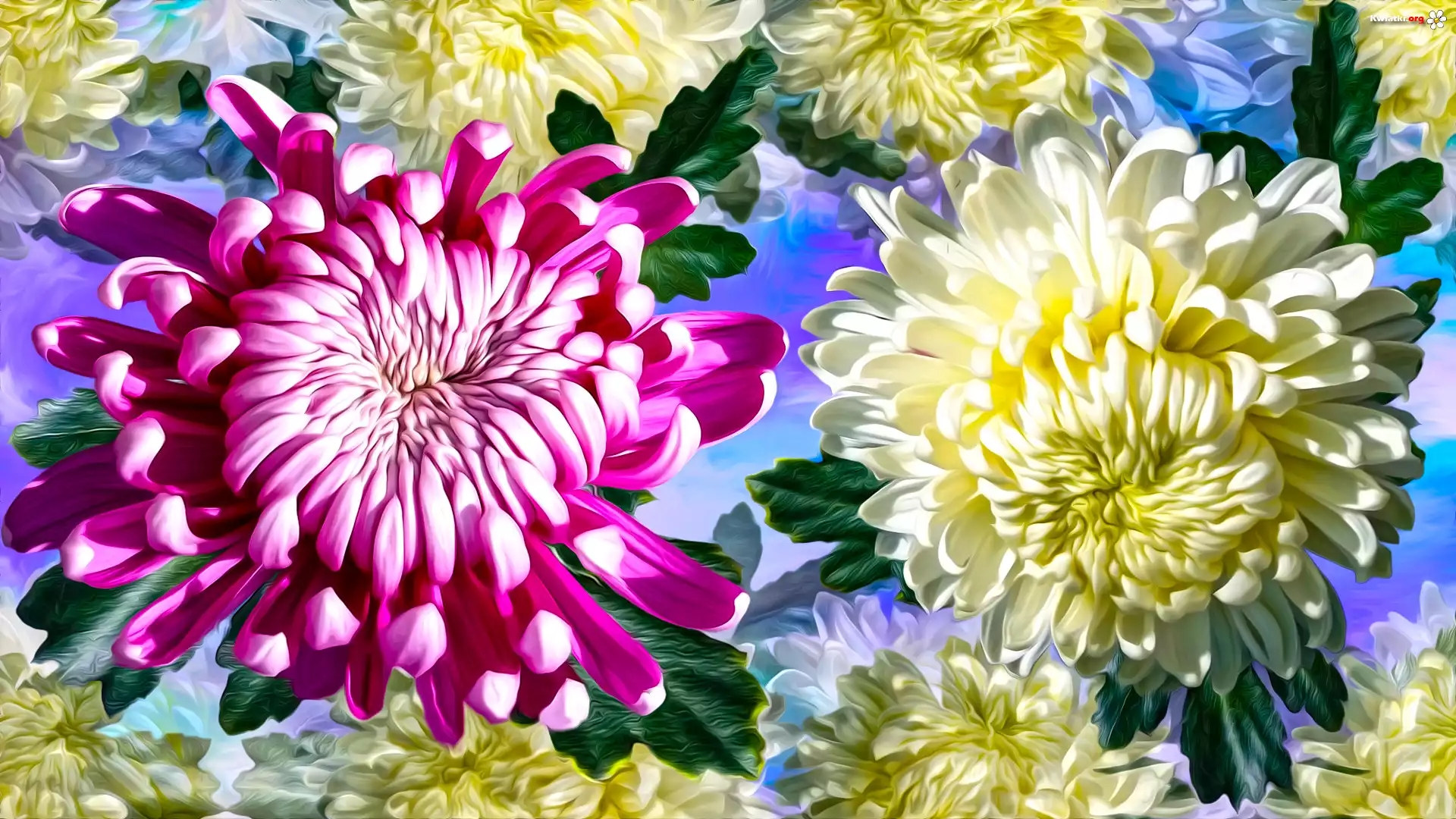 Kwiaty, Różowa, Biała, Chryzantema, Grafika - Zdjęcia