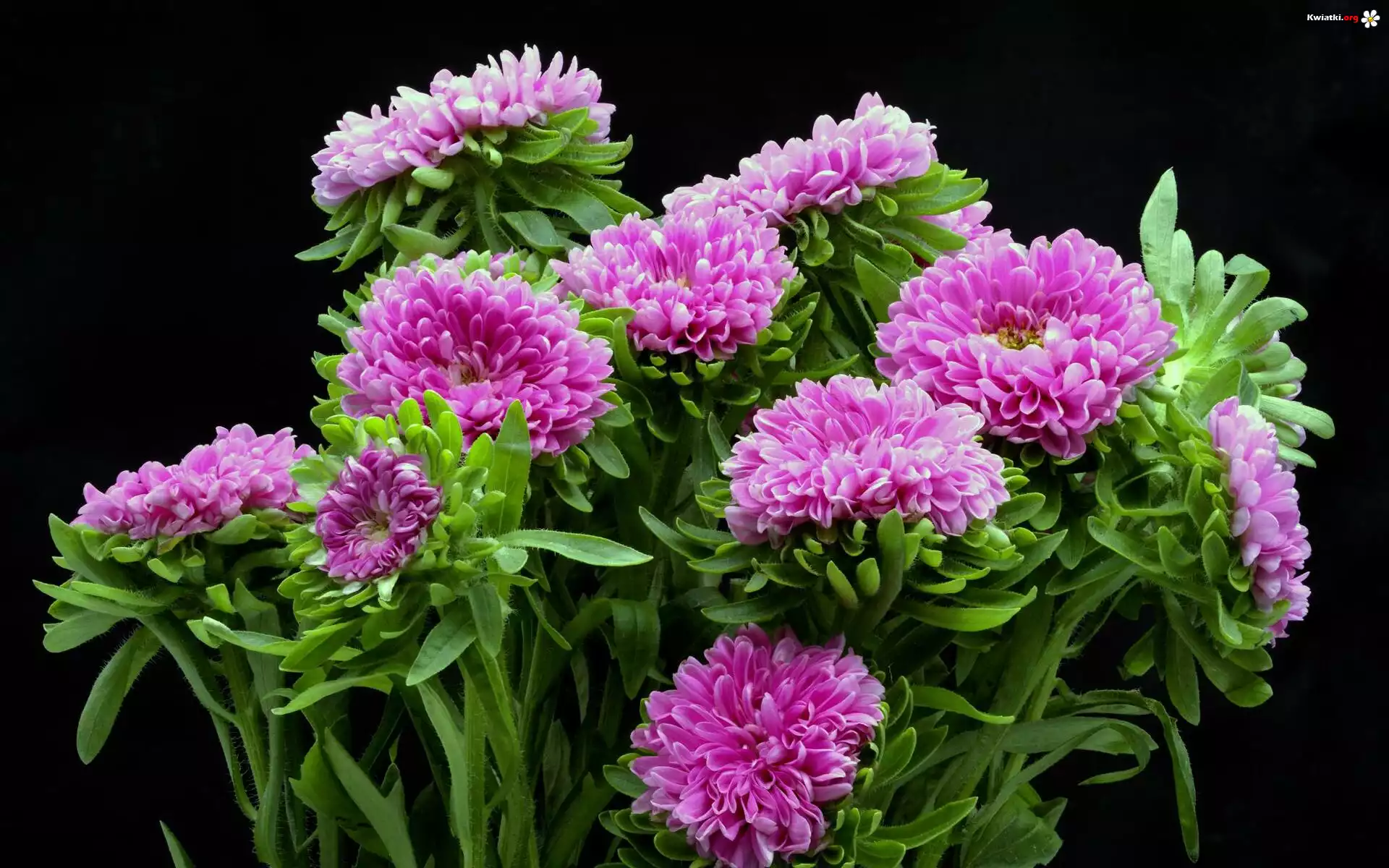 Kwiaty, Różowe, Astry chryzantemowe, Liście - Zdjęcia