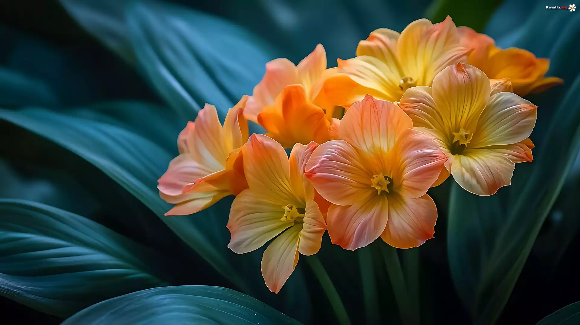Pomarańczowe, Kwiaty, Ciemnozielone, Liście, Grafika - Zdjęcia