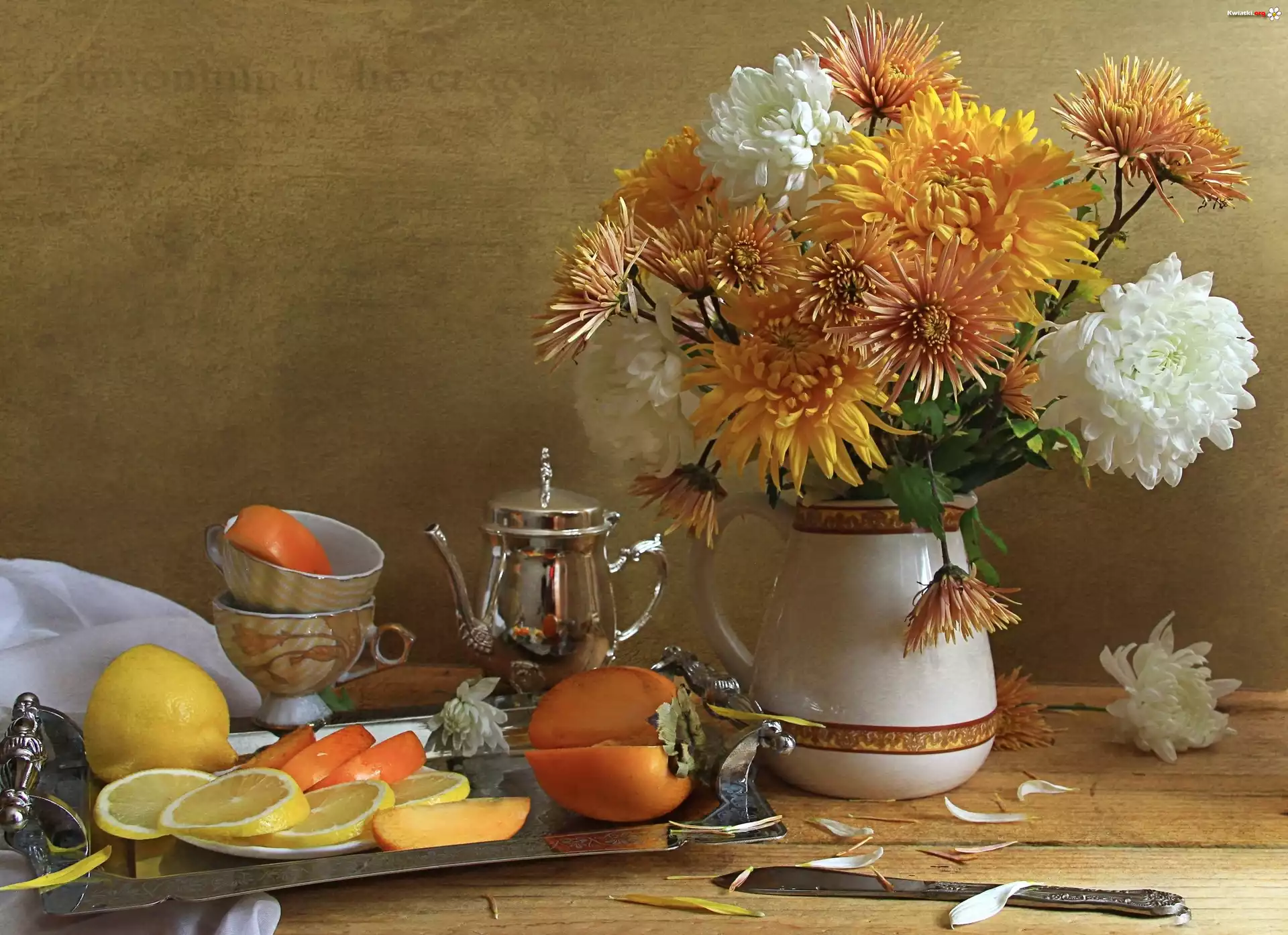 Kwiaty, Wazon, Cytryny, Taca - Zdjęcia