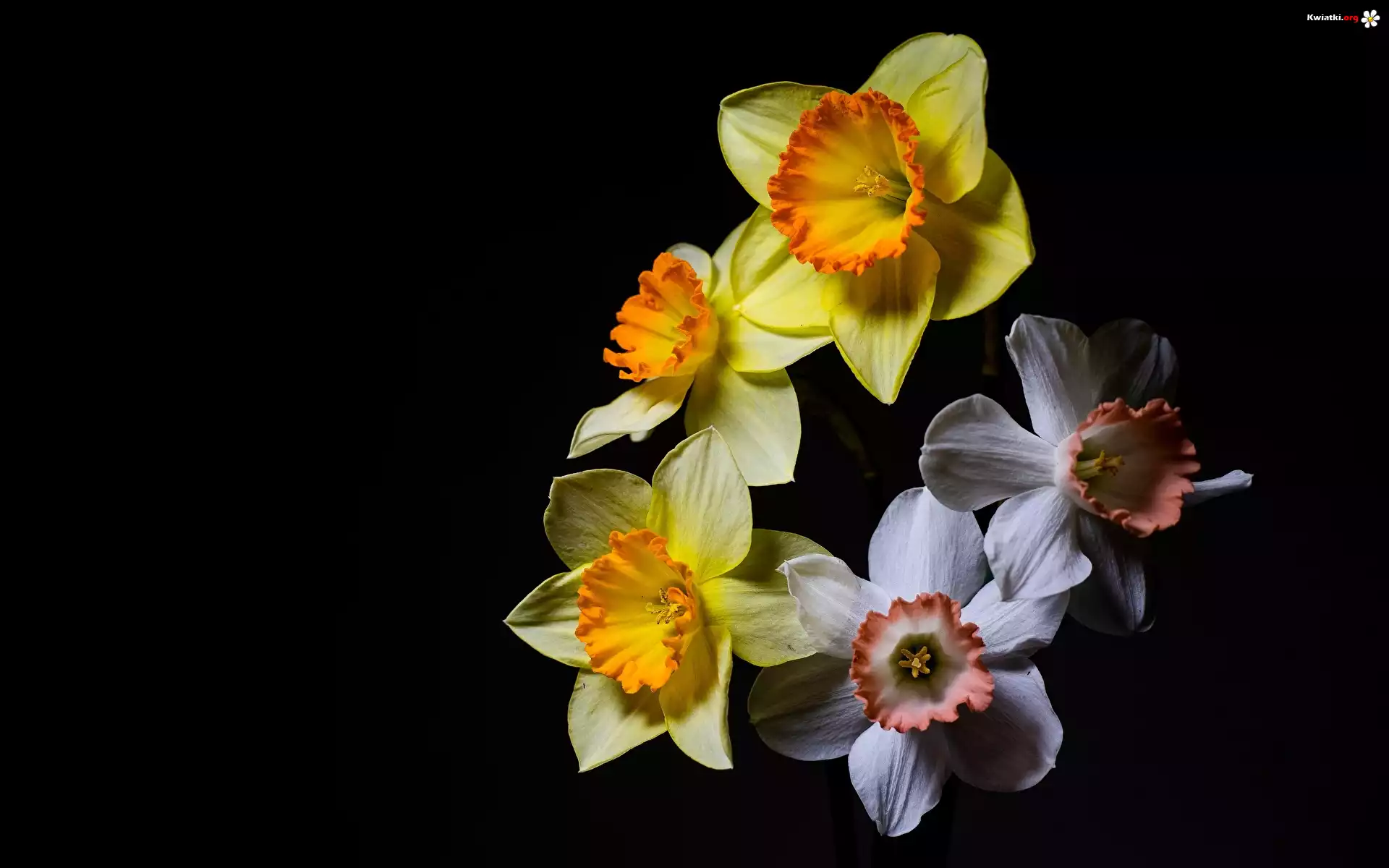 Kwiaty, Żółte, Białe, Narcyzy, Czarne, Tło - Zdjęcia