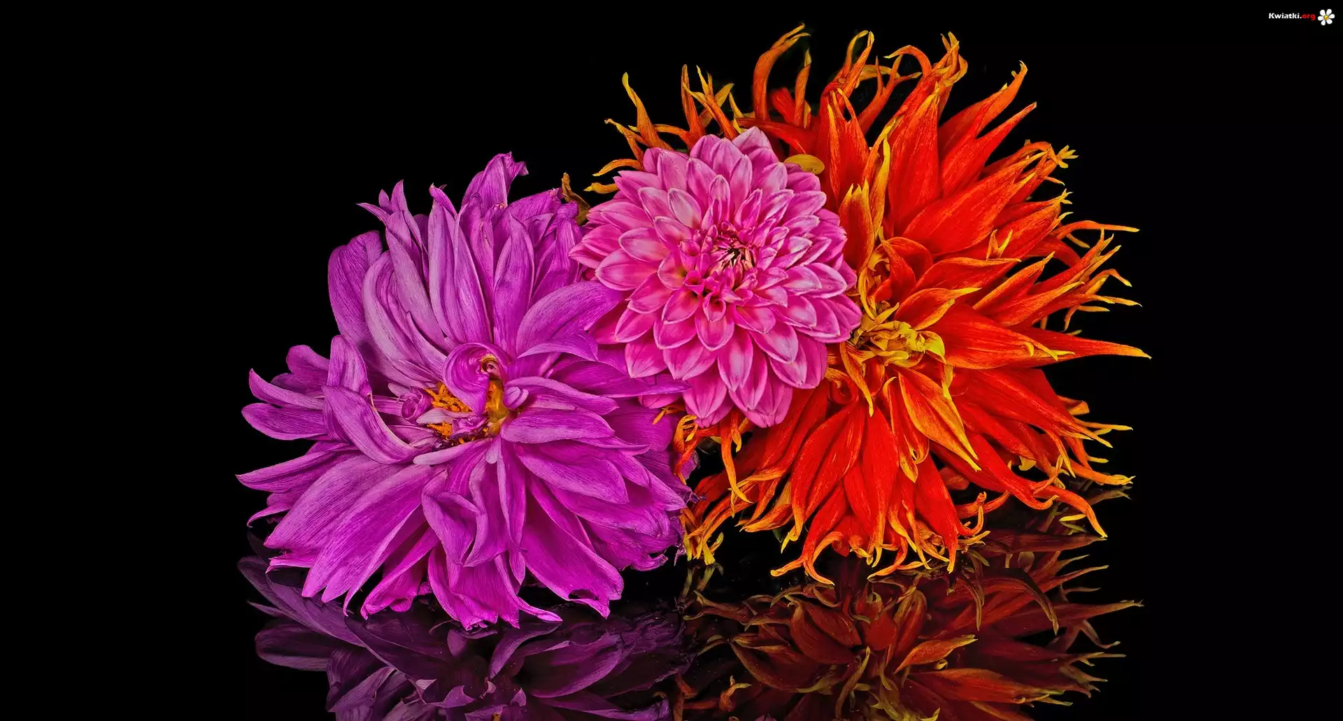 Kwiaty, Dalie, Odbicie, Czarne, Tło - Zdjęcia