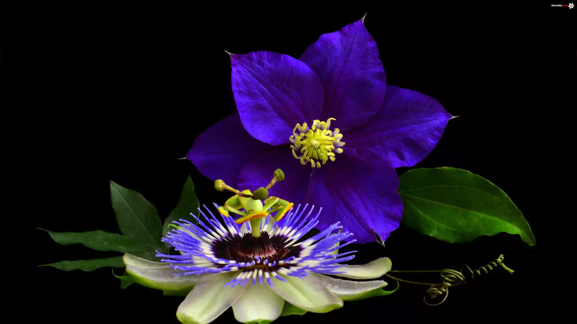 Kwiaty, Męczennica, Powojnik, Liście, Czarne, Tło - Zdjęcia