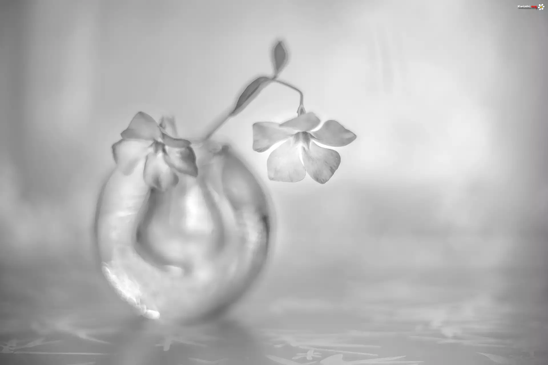 Kwiaty, Barwinek, Szklany, Wazonik, Czarno-białe - Zdjęcia