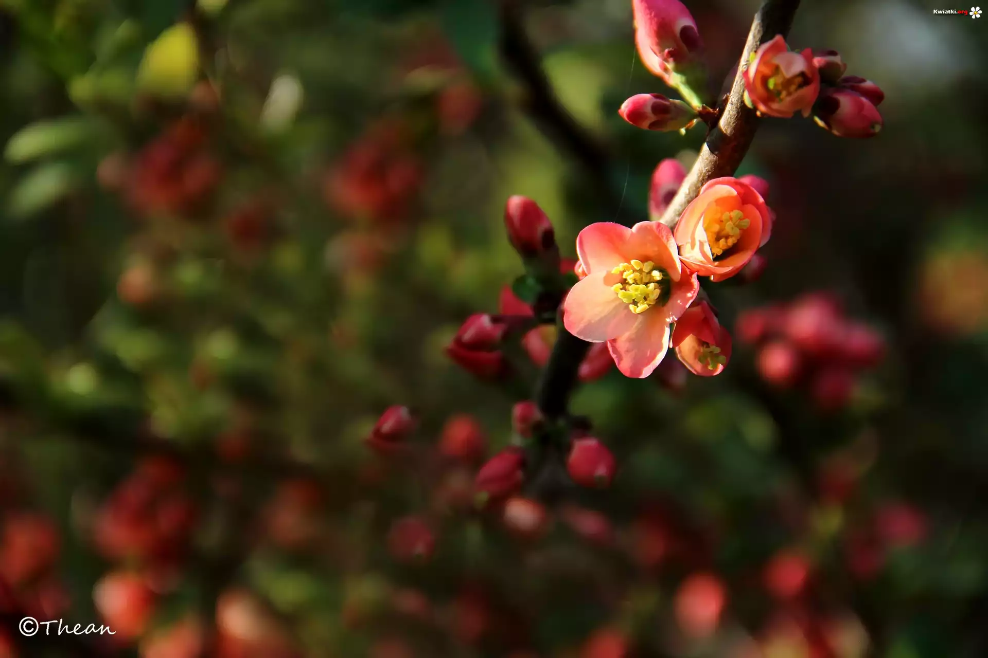 Czerwone, Kwiaty, Gałązka - Zdjęcia