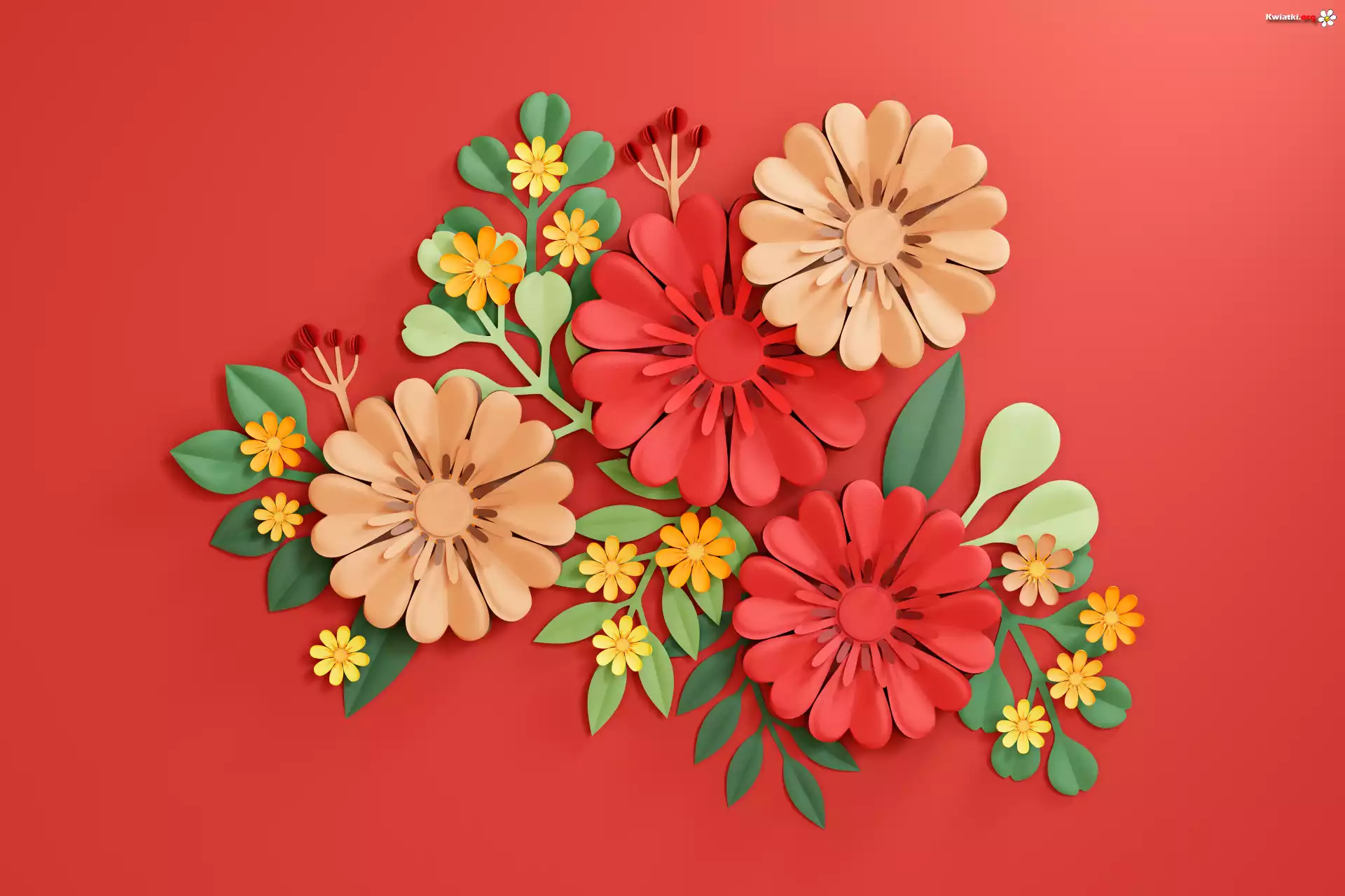 Kolorowe, Kwiaty, Czerwone, Tło, Grafika - Zdjęcia