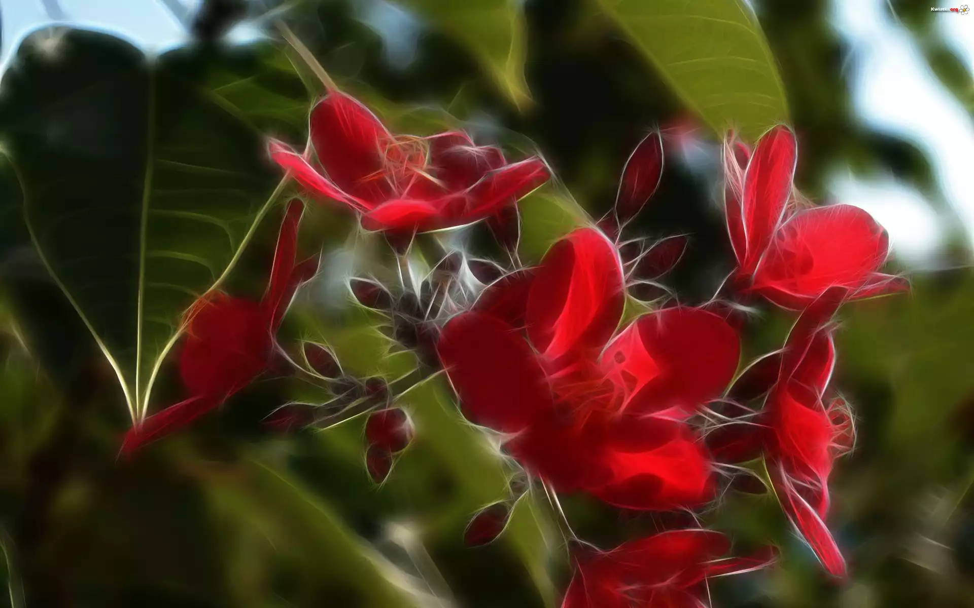 Czerwone, Kwiaty, Grafika - Zdjęcia