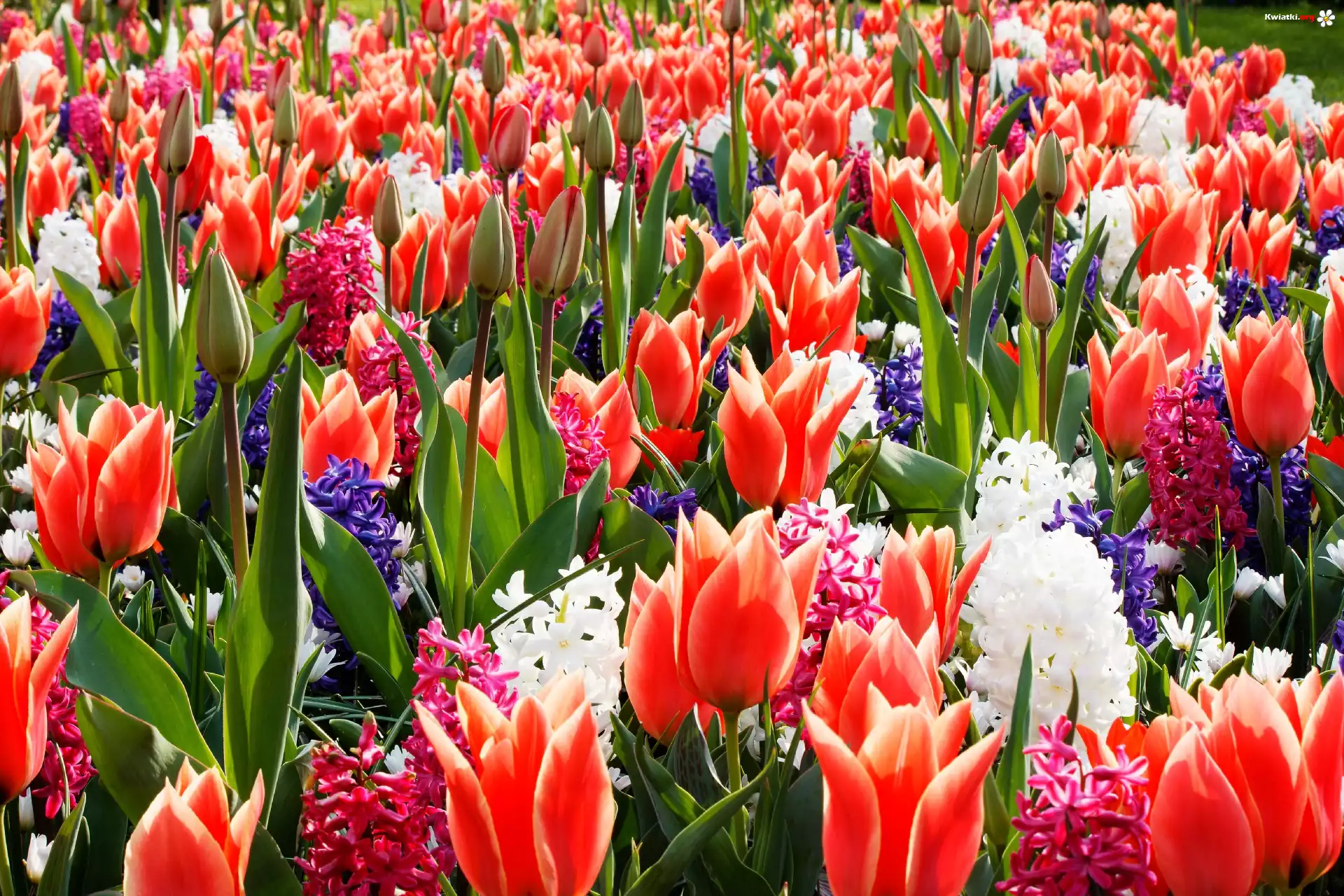 Kwiat Kolorowe, Kwiaty, Czerwone, Tulipany, Hiacynty