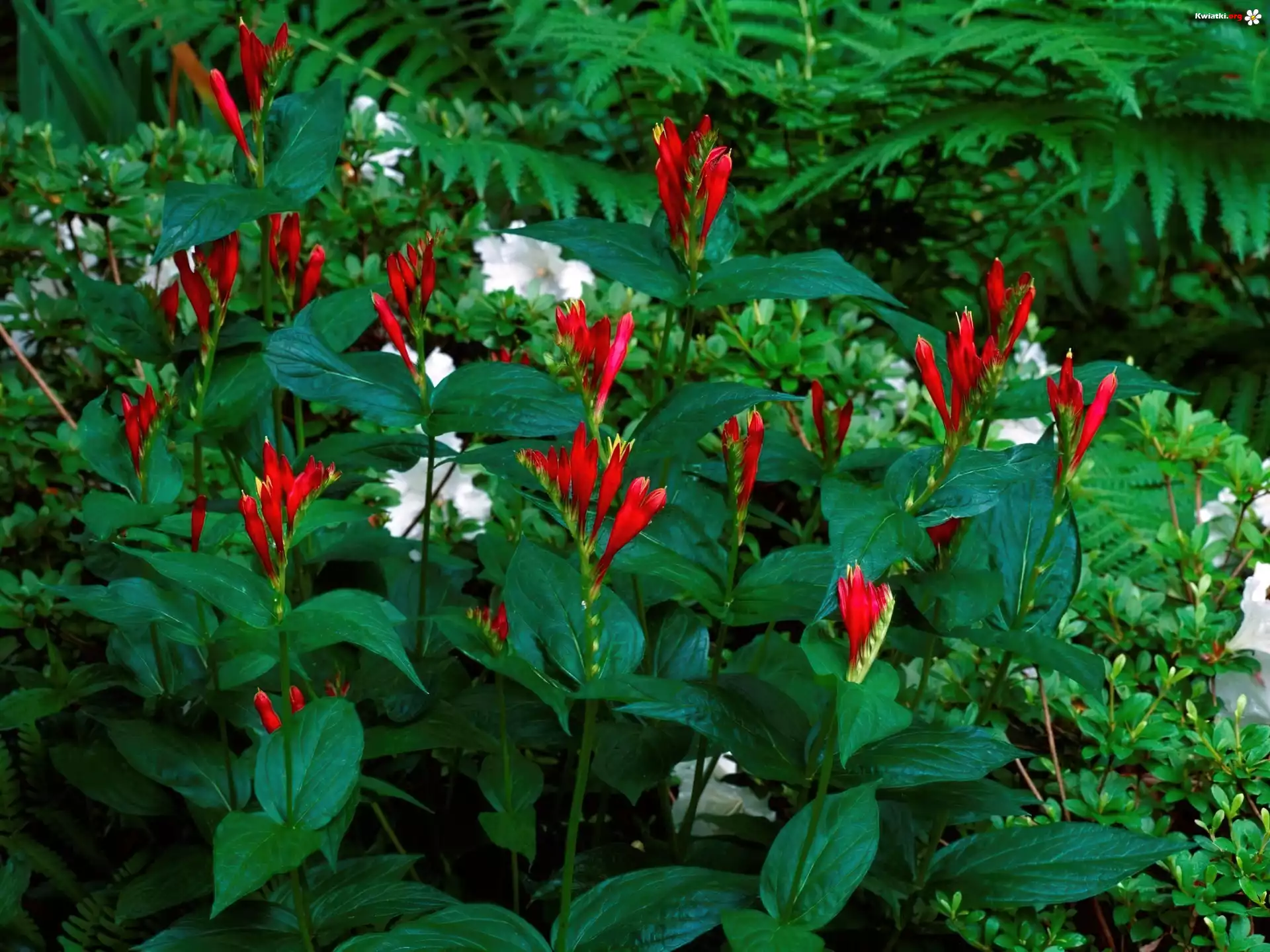 Czerwone, Kwiaty, Liście - Zdjęcia