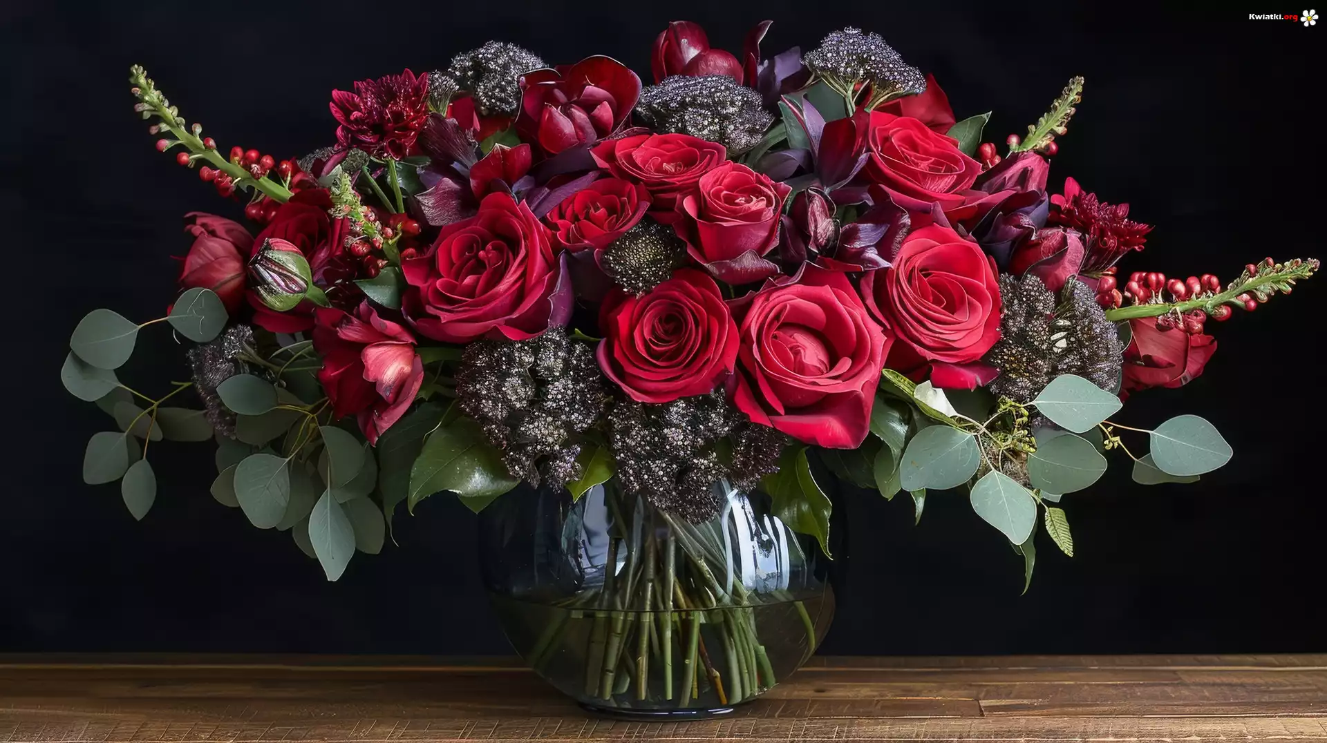 Bukiet, Kwiaty, Czerwone, Róże, Wazon - Zdjęcia