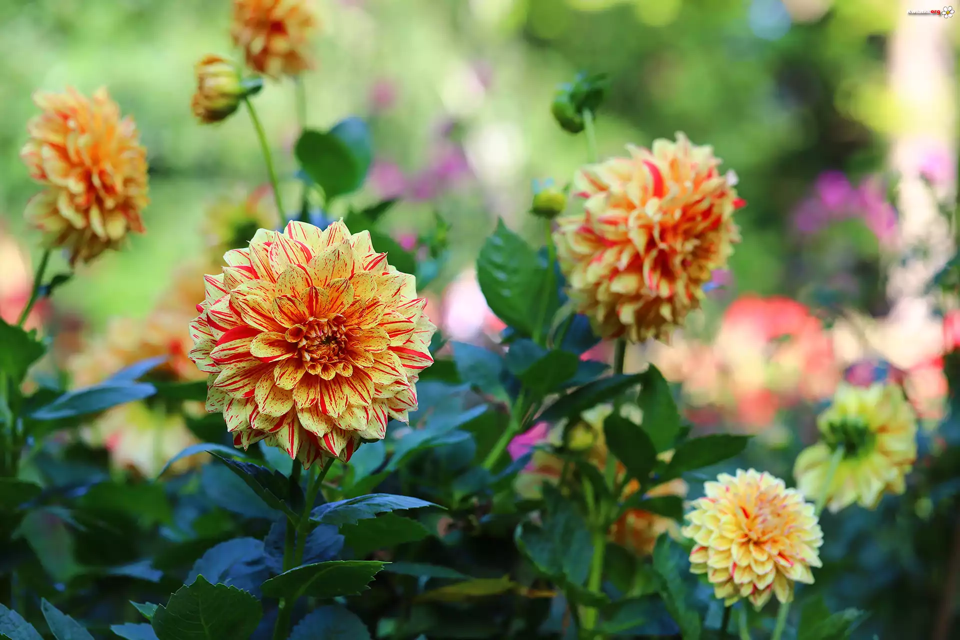 Dalie, Rozkwitnięte, Kolorowe, Kwiaty - Zdjęcia