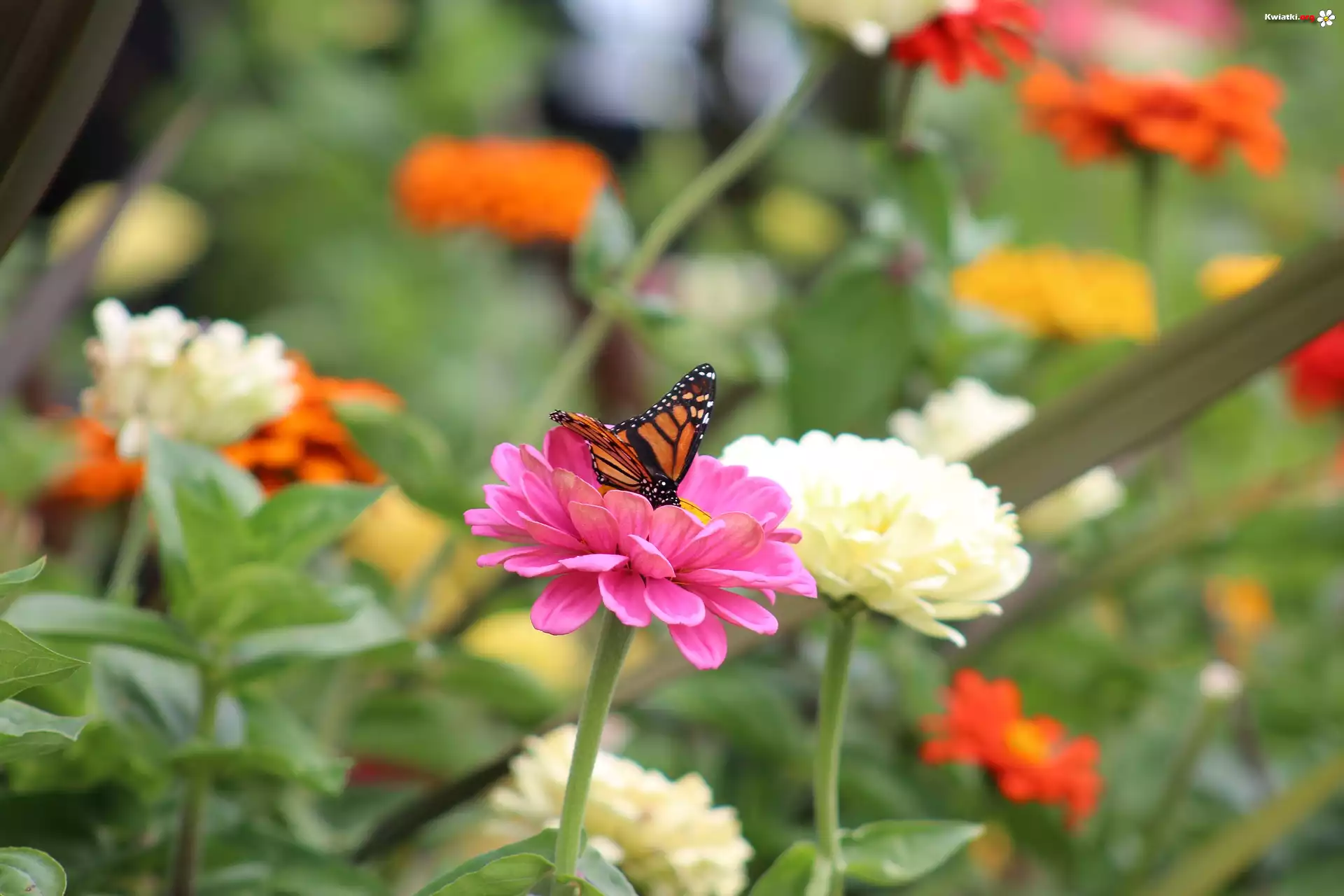 Kwiaty, Cynie, Motyl, Monarcha, Danaid wędrowny - Zdjęcia