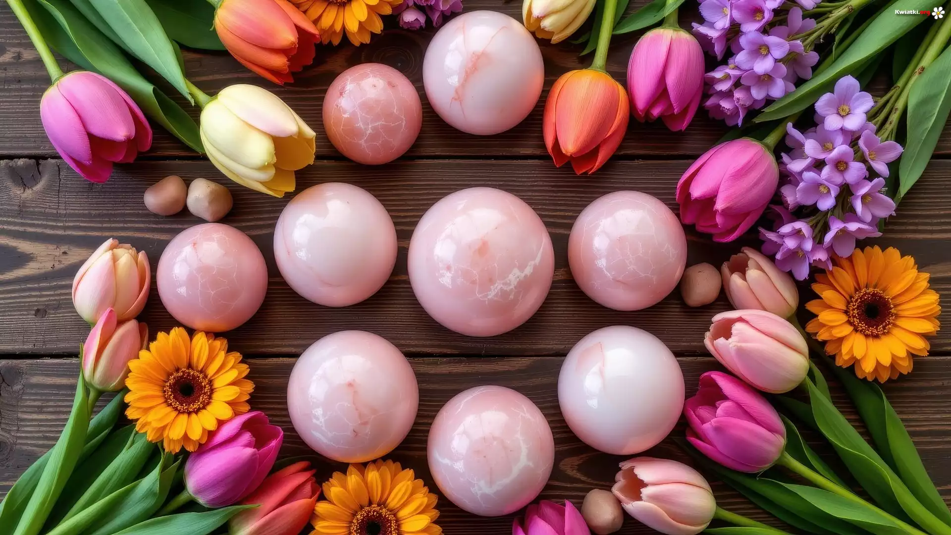 Różowe, Kule, Kolorowe, Kwiaty, Tulipany, Deski - Zdjęcia