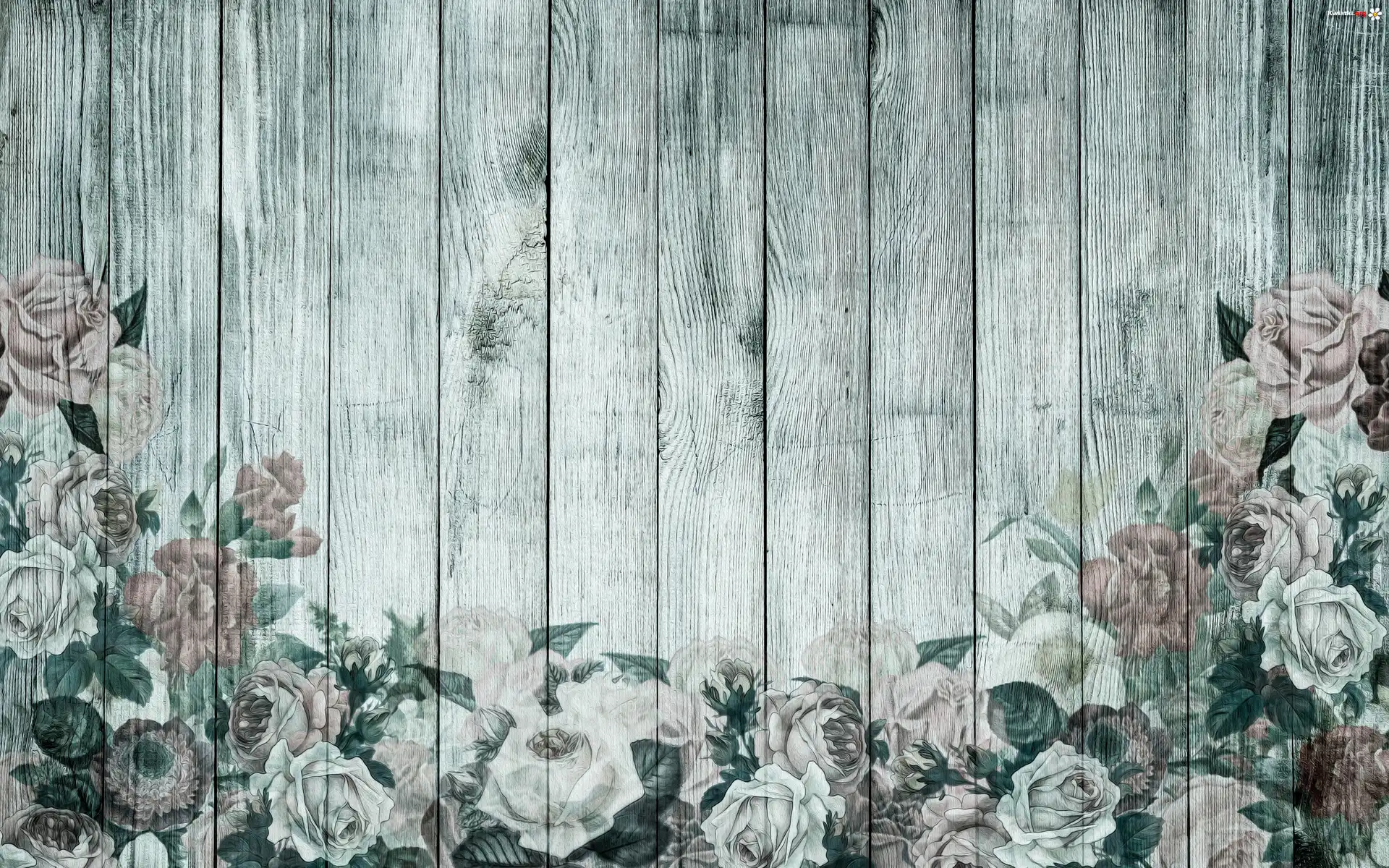 Kwiaty, Róże, Deski, Grafika - Zdjęcia