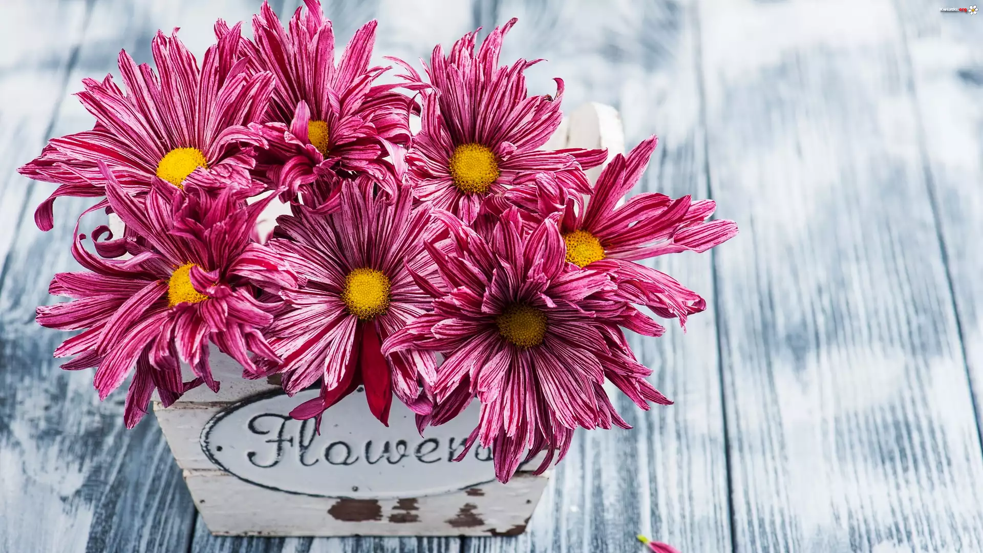 Kwiaty, Chryzantemy, Drewniana, Doniczka, Deski - Zdjęcia