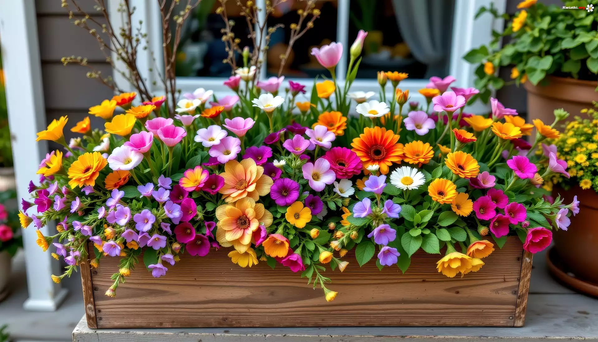 Kolorowe, Kwiaty, Drewniana, Skrzynka, Grafika - Zdjęcia