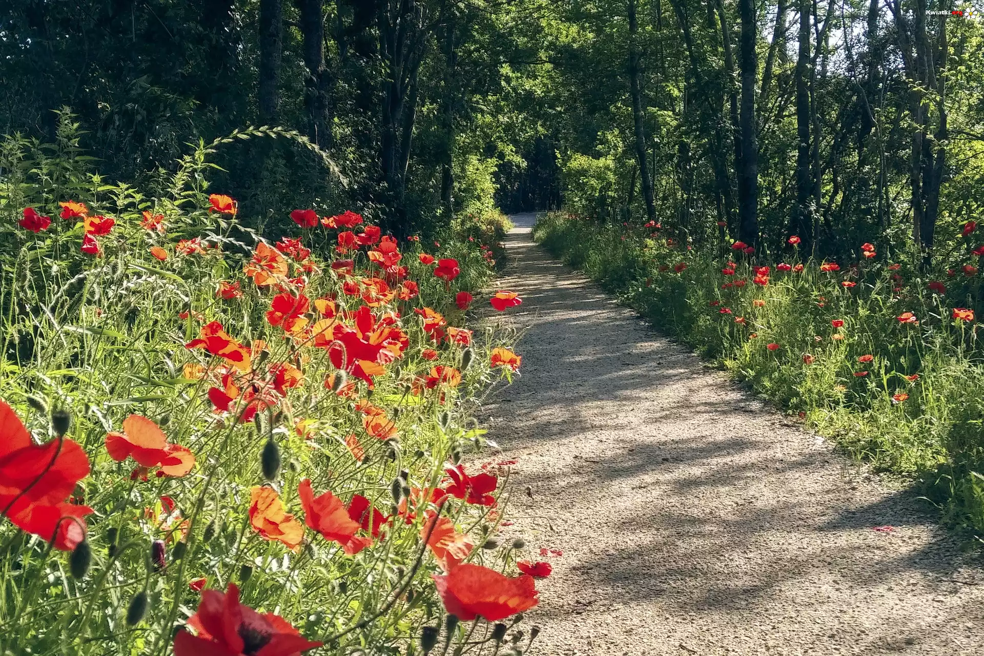 Kwiaty, Maki, Droga, Ścieżka - Zdjęcia