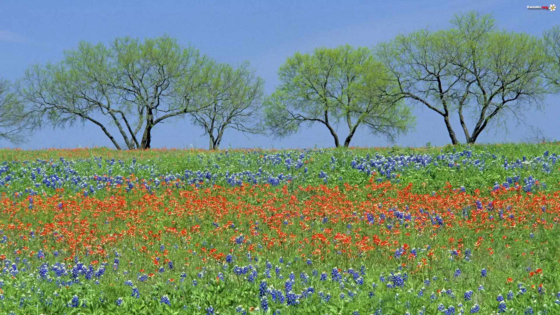 Łąka, Drzewa, Kwiaty, Wiosna - Zdjęcia