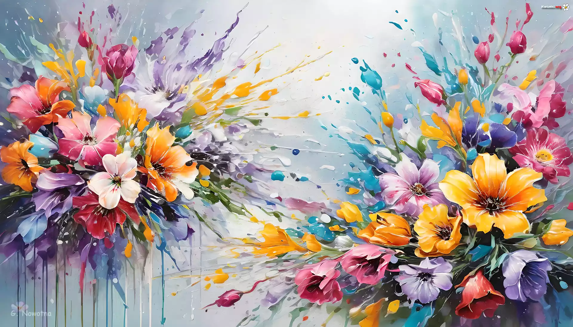 Kolorowe, Kwiaty, Dwa, Bukiety, Grafika - Zdjęcia