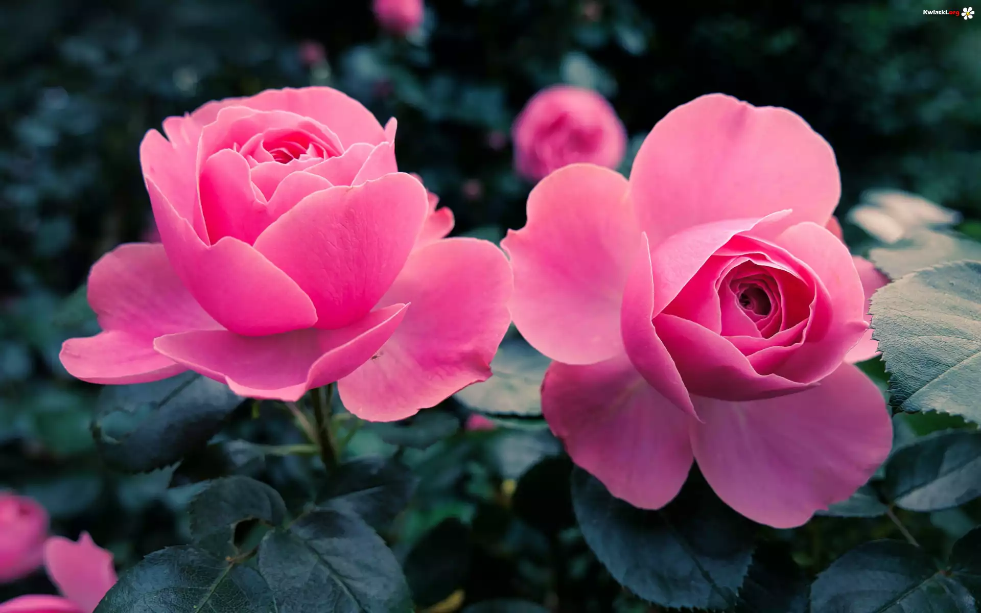 Różowe, Kwiaty, Dwie, Róże, Liście - Zdjęcia