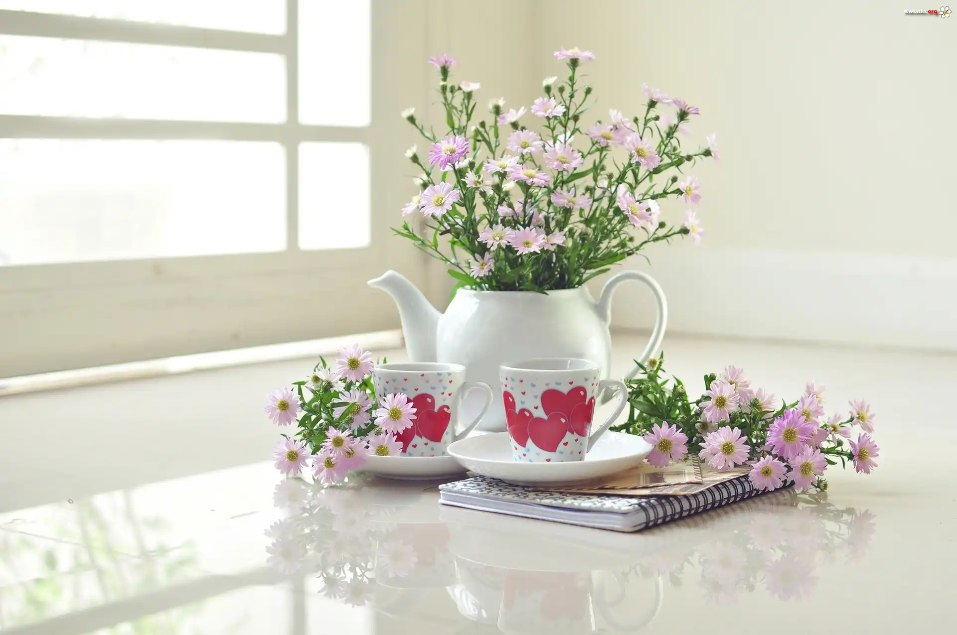 Kwiaty, Bukiety, Dzbanek, Filizanki - Zdjęcia