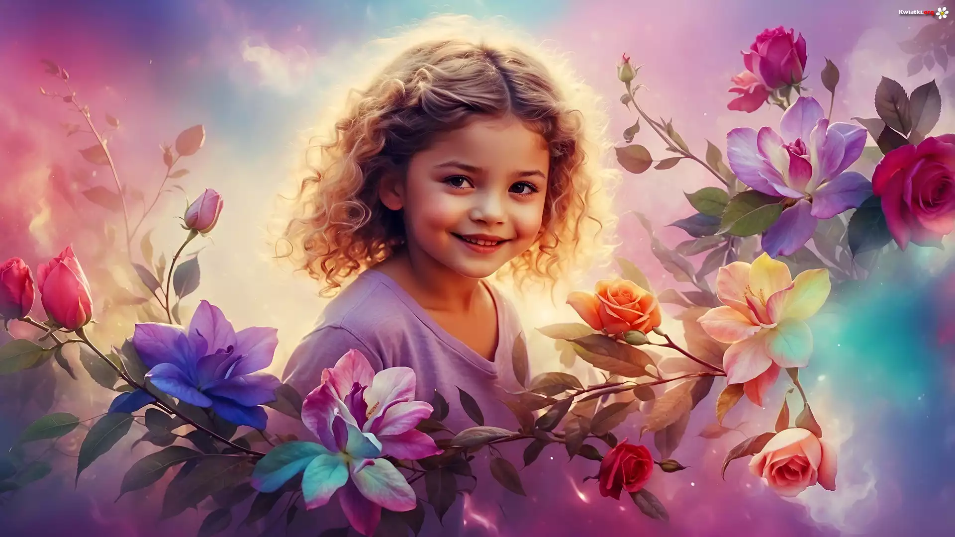 Kwiaty, Grafika, Dziewczynka - Zdjęcia