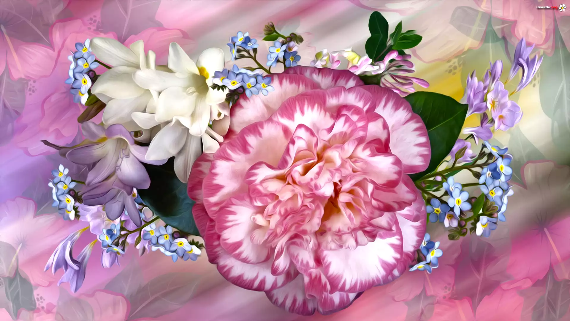 Kwiaty, Kamelia, Niezapominajki, Dzwonki, Grafika - Zdjęcia