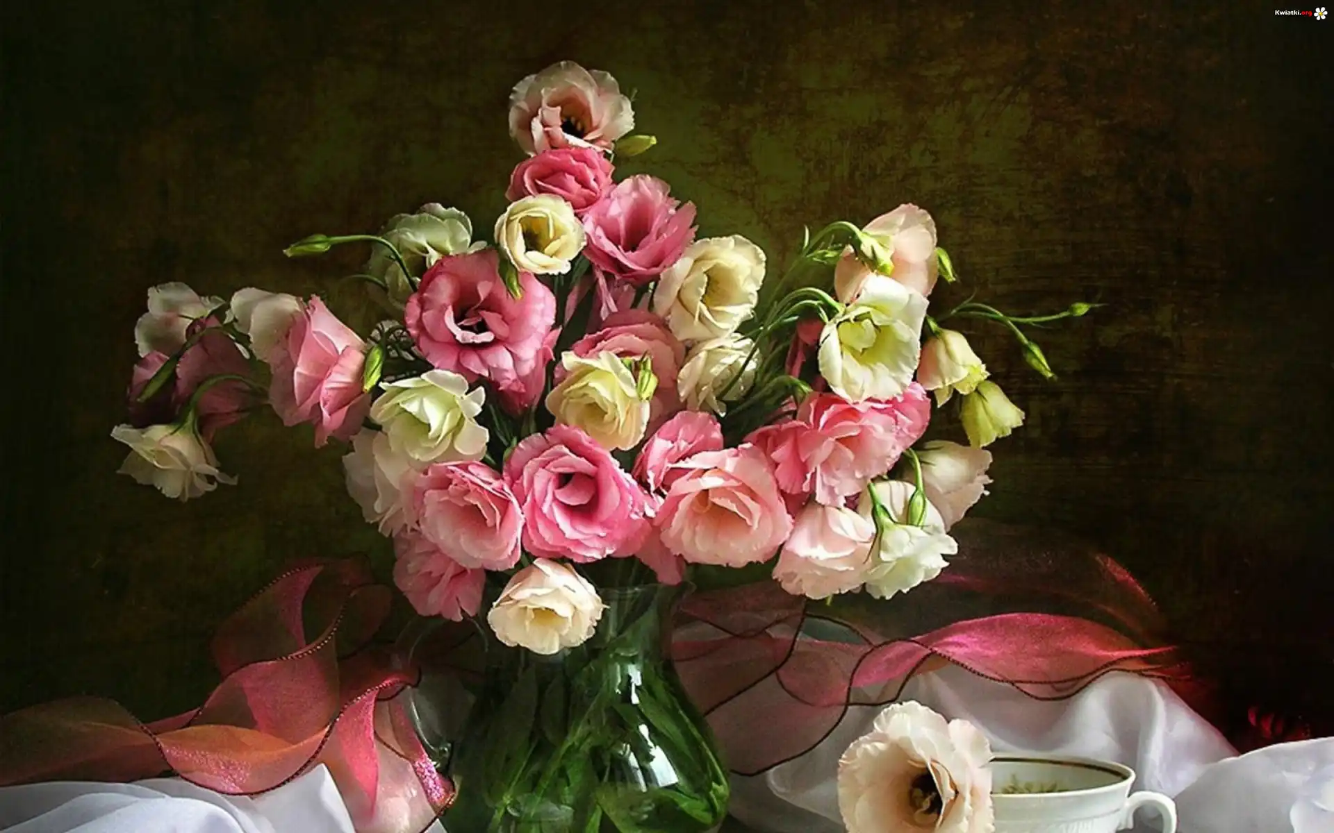 Kwiat Kwiaty, Bukiet, Eustoma, Filiżanka