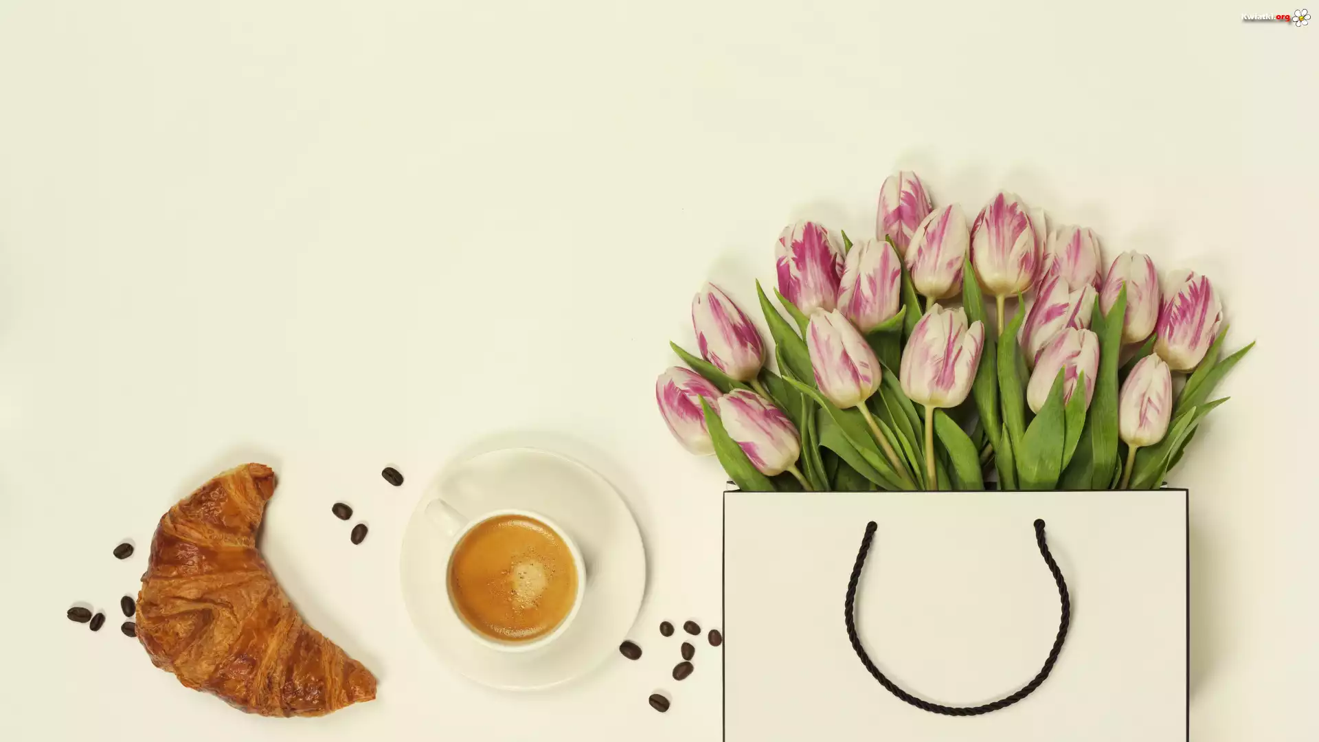 Kwiat Kwiaty, Tulipany, Rogal, Kawa, Filiżanka, Ziarenka