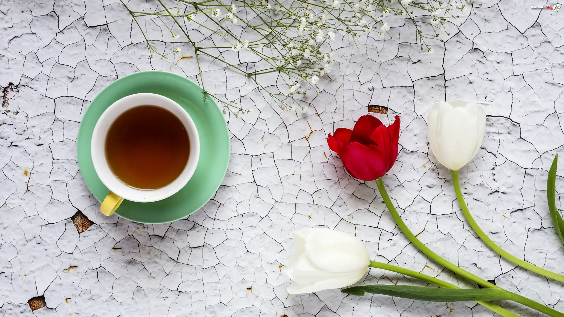 Kwiaty, Tulipany, Filiżanka, Herbata - Zdjęcia