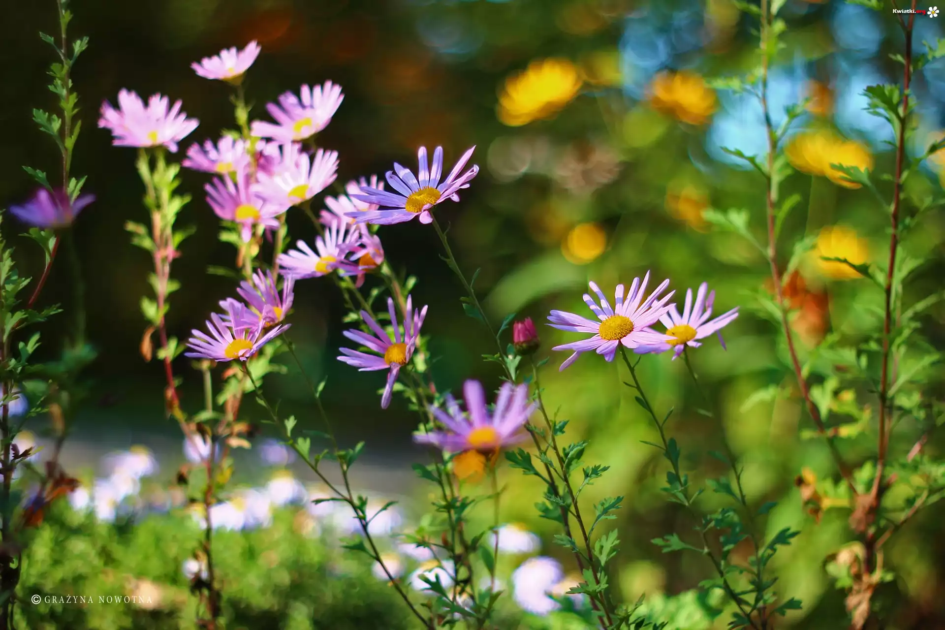 Fioletowe, Kwiaty, Astry - Zdjęcia