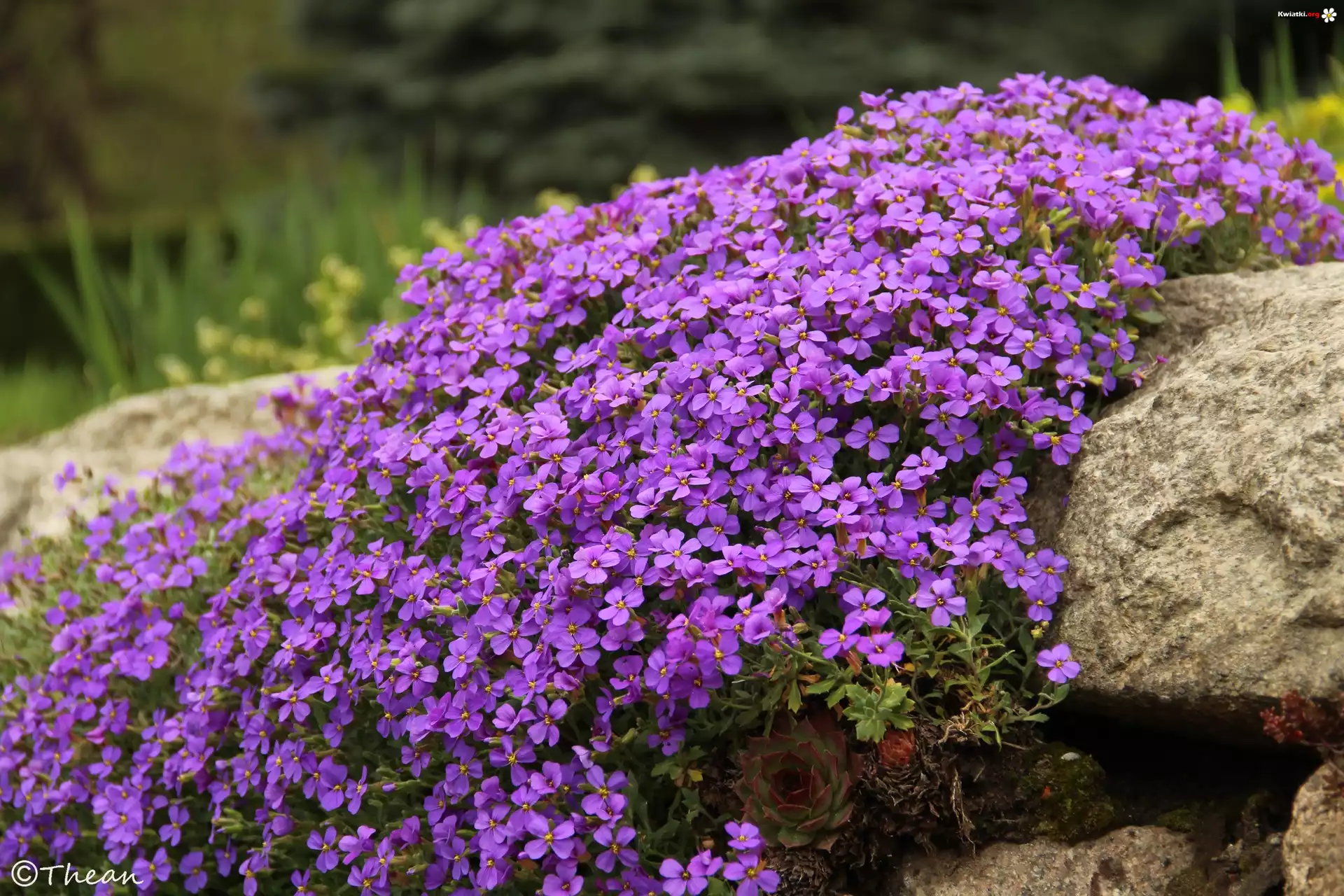 Fioletowe, Kwiaty, Kamień - Zdjęcia